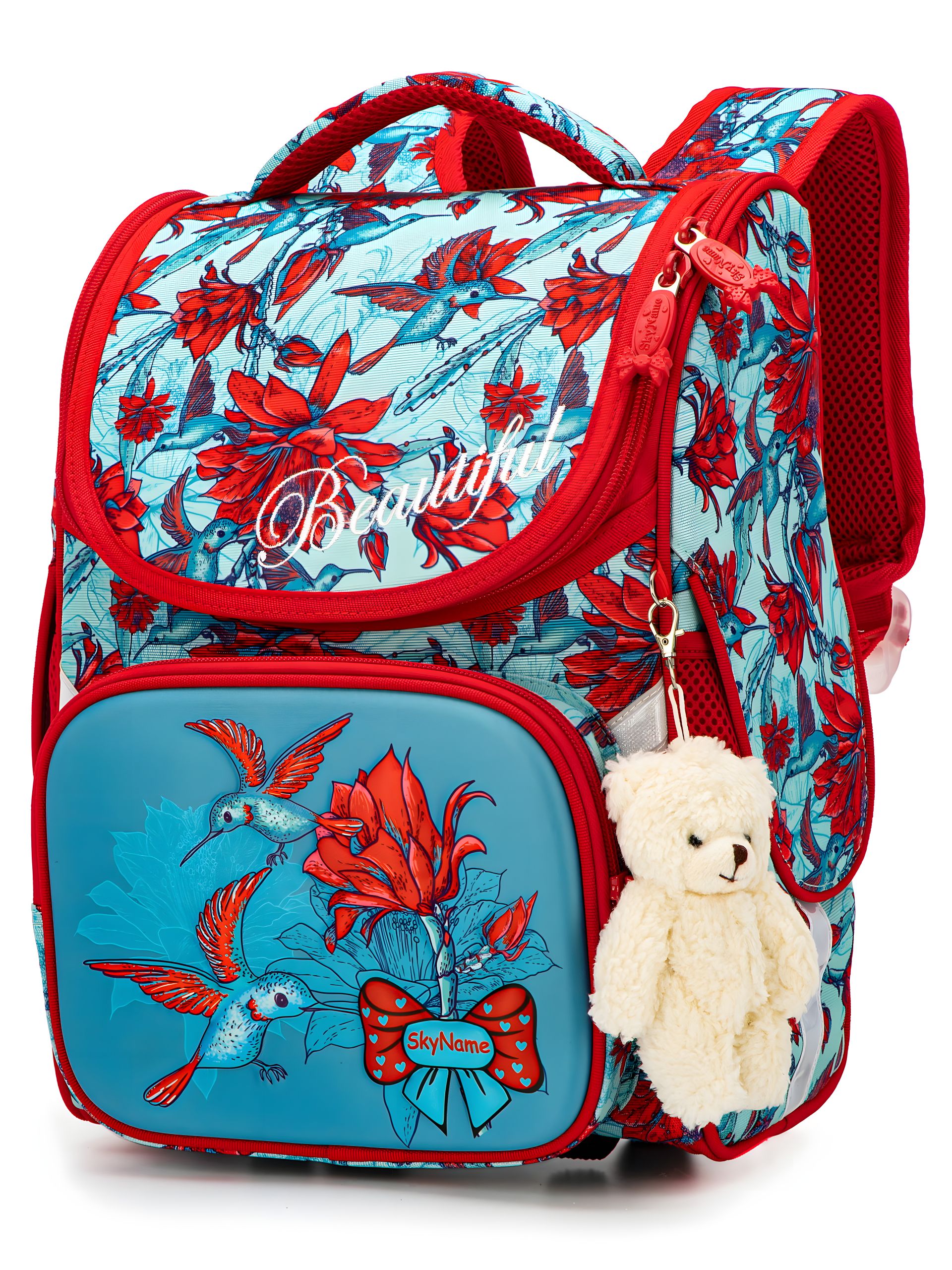 Ранец школьный Sky Name одно отделение, красно-голубой - Одноотделочный школьный ранец Sky Name