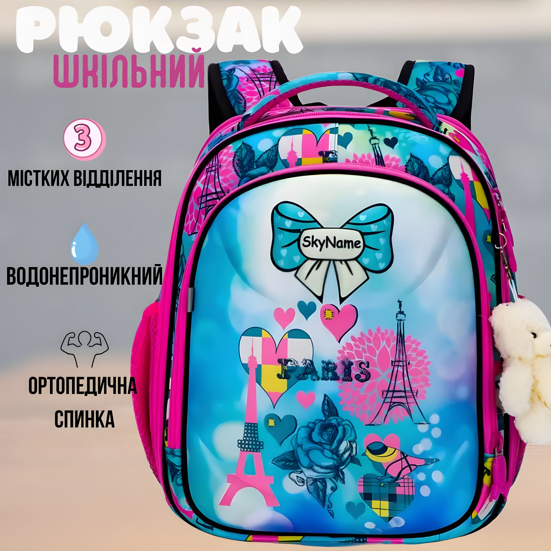 Рюкзак, ранец жесткий каркас, для девочки на два отделения с органайзером, R4-411, защита от влаги, брелок-мишка в комплекте Winner One/SkyName размер: 29*16*35 см, разноцветный