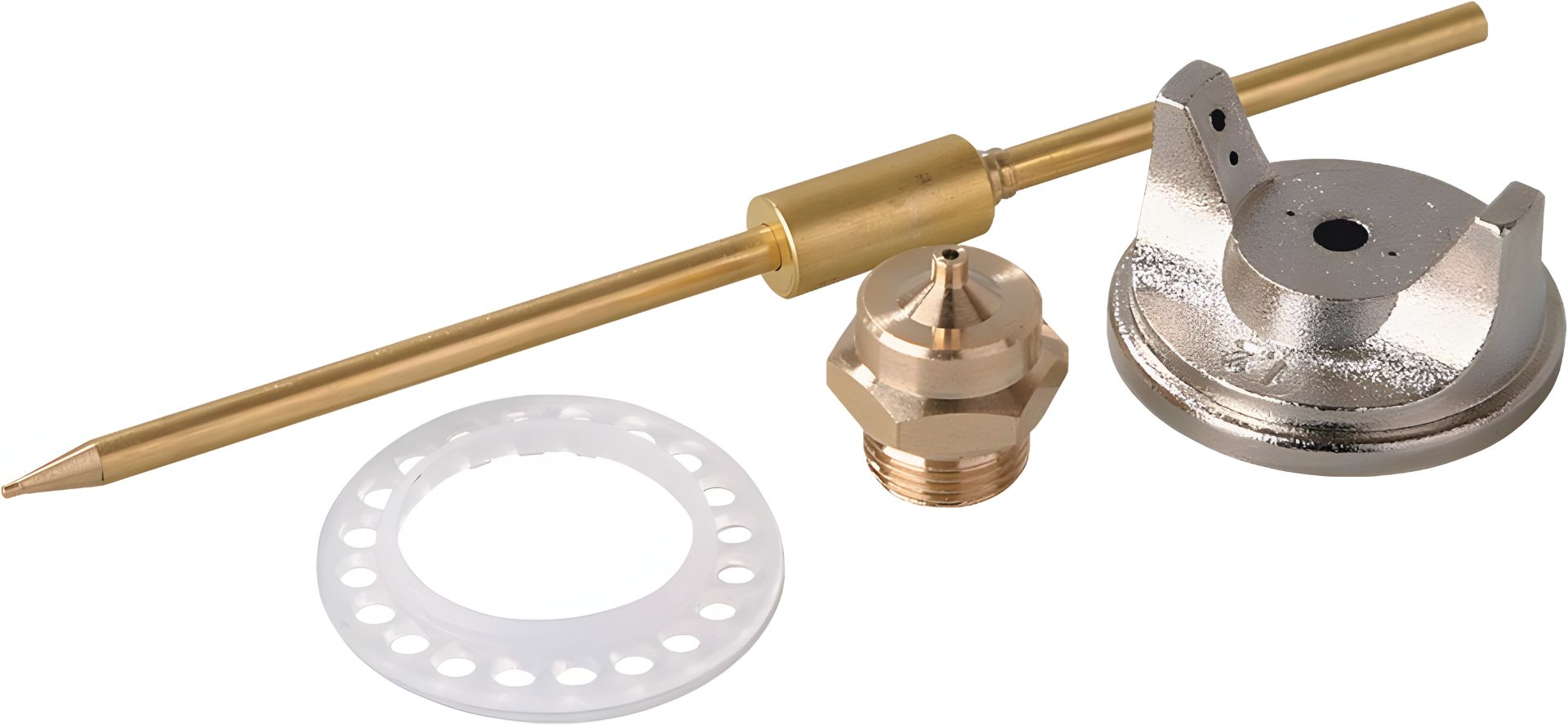 В комплект входит воздушная форсунка, игла, прокладка и сопло. Предназначен для ремонта пневмопистолетов 80-860, 80-862, 80-864, 80-865, 80-868, 80-869.