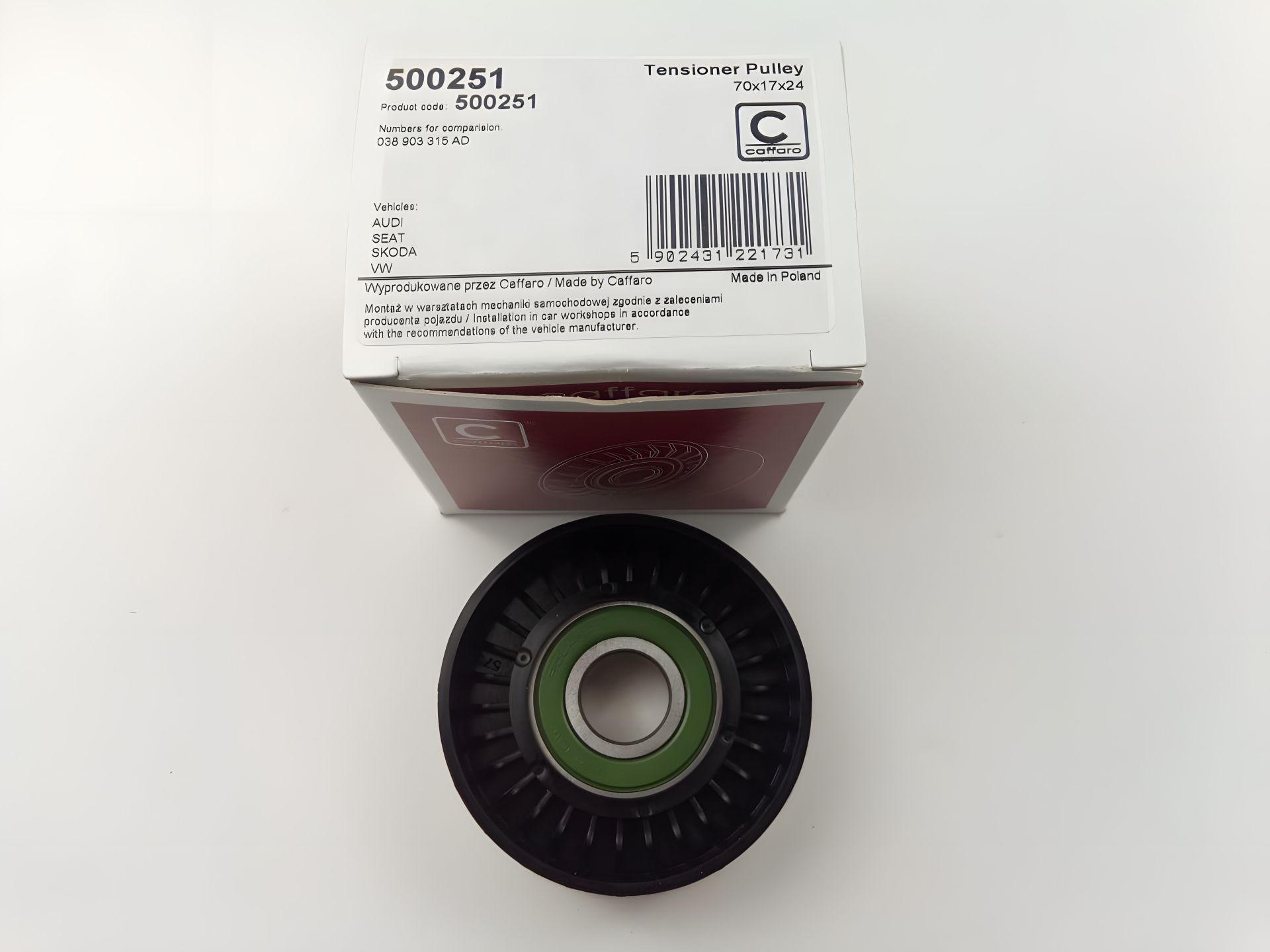Натяжной ролик ремня генератора AUDI/SEAT/SKODA, CAFFARO (500251) пласт. (038903315AD)