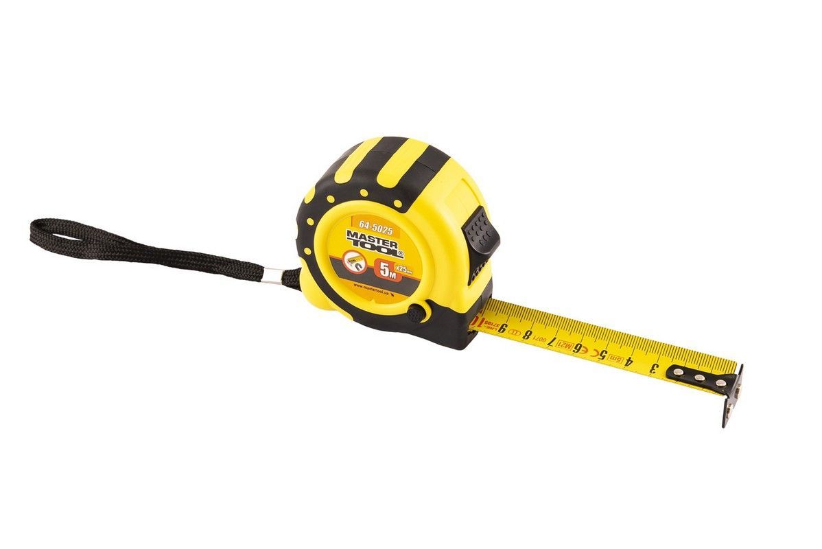 Рулетка 5 м х 25 мм с магнитами 2 фиксатора кнопка STOP покрытие TPR нейлоновое покрытие MASTERTOOL 64-5025