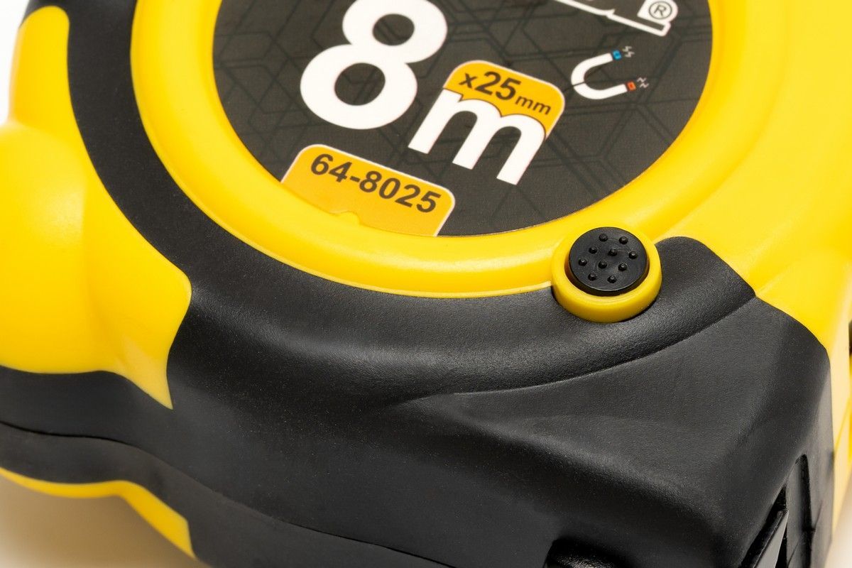 Рулетка 8 м × 25 мм с магнитами и двойной системой фиксации — это сочетание удобства, точности и долговечности. • стальное полотно с нейлоновым покрытием
