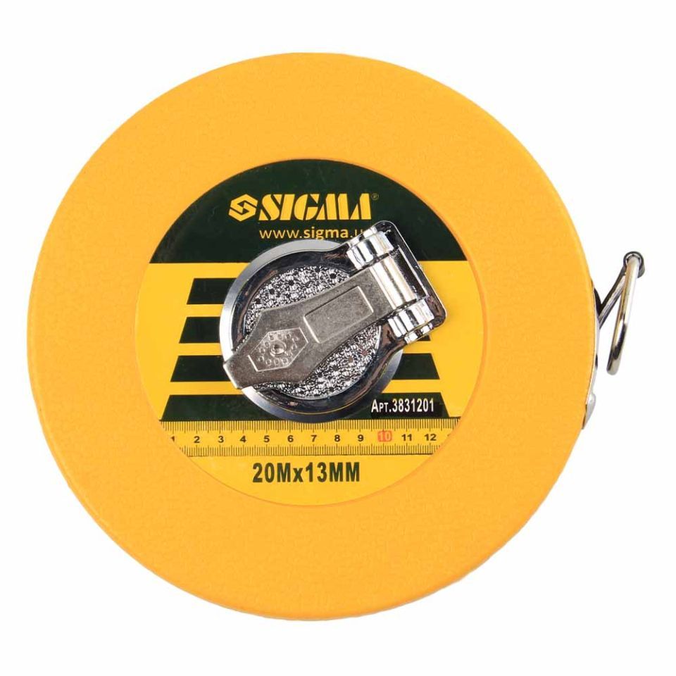 Рулетка геодезическая закрытый корпус стекловолоконное полотно 20м×13мм SIGMA (3831201) - особенностью стекловолоконных рулеток является возможность измерения больших расстояний за счет увеличенной прочности ленты с низким коэффициентом растяжения.