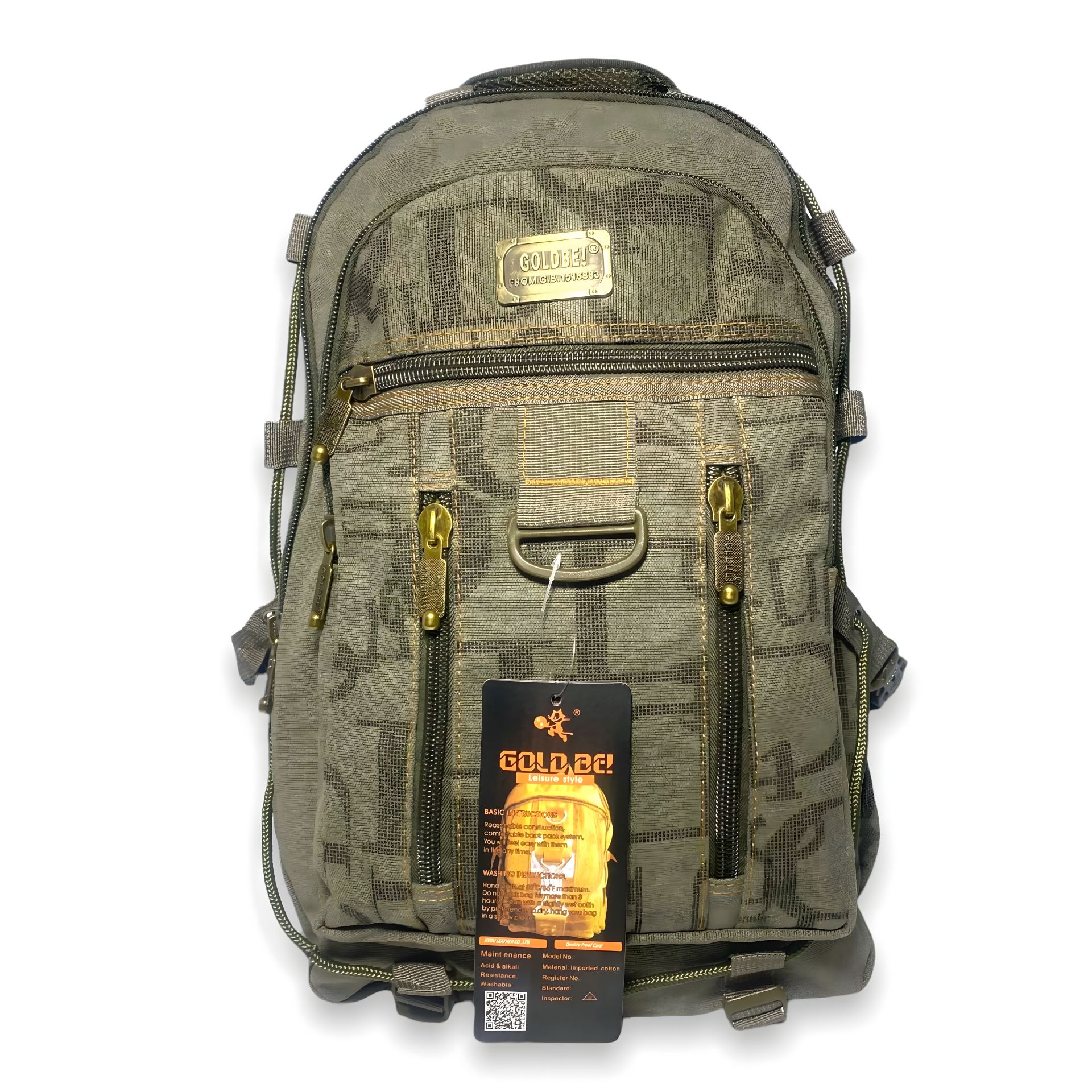 Рюкзак из брезента, современный, надежный, 257 три отдела, карманы на лицевой стороне, боковые стяжки, внутренние карманы, размеры 50*30*16 см, хаки