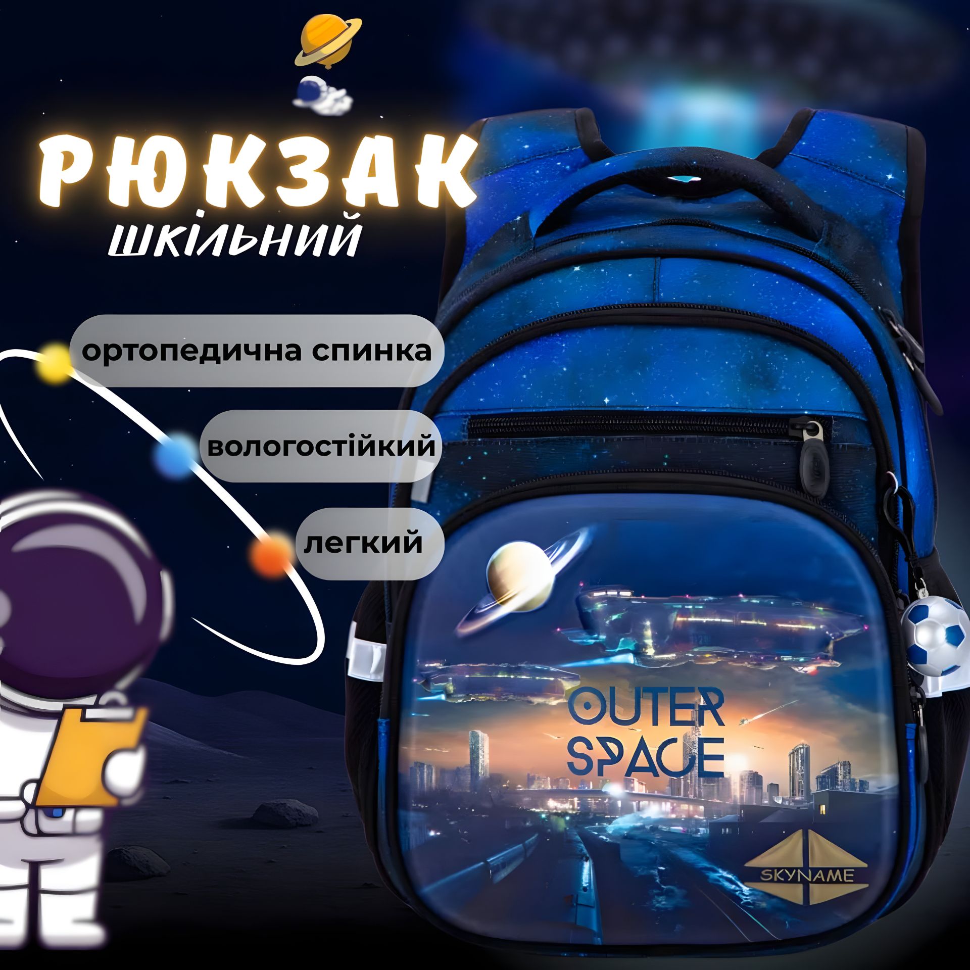 Влагозащитный школьный рюкзак с брелоком-мячиком, Winner One/Sky Name, синий