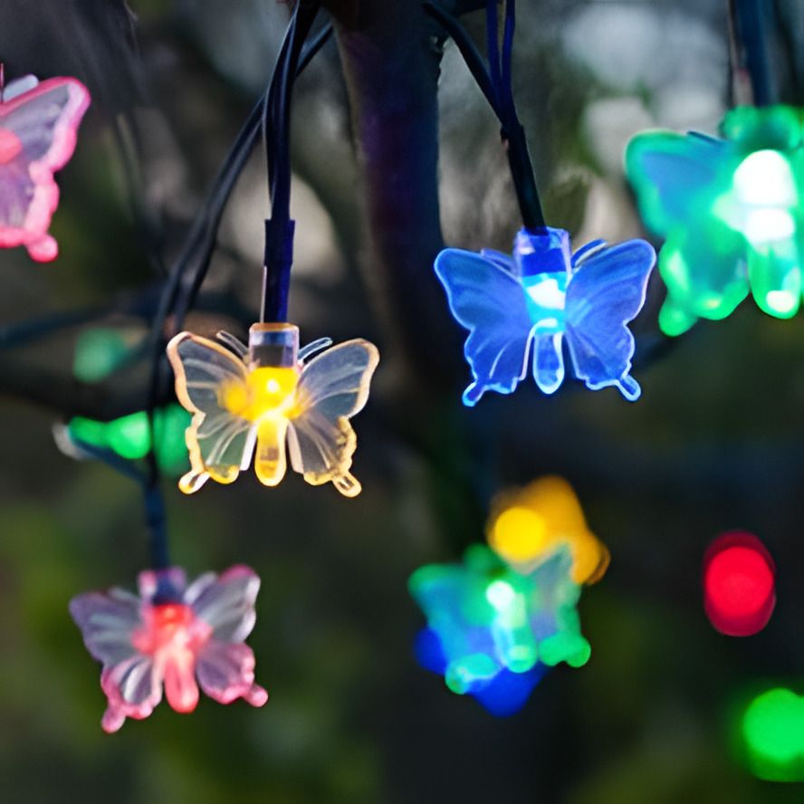 Гирлянда имеет длину 5,8 м и состоит из лампочек в форме красивых бабочек, которые создают приятную атмосферу и добавляют яркие краски в окружающий ландшафт.