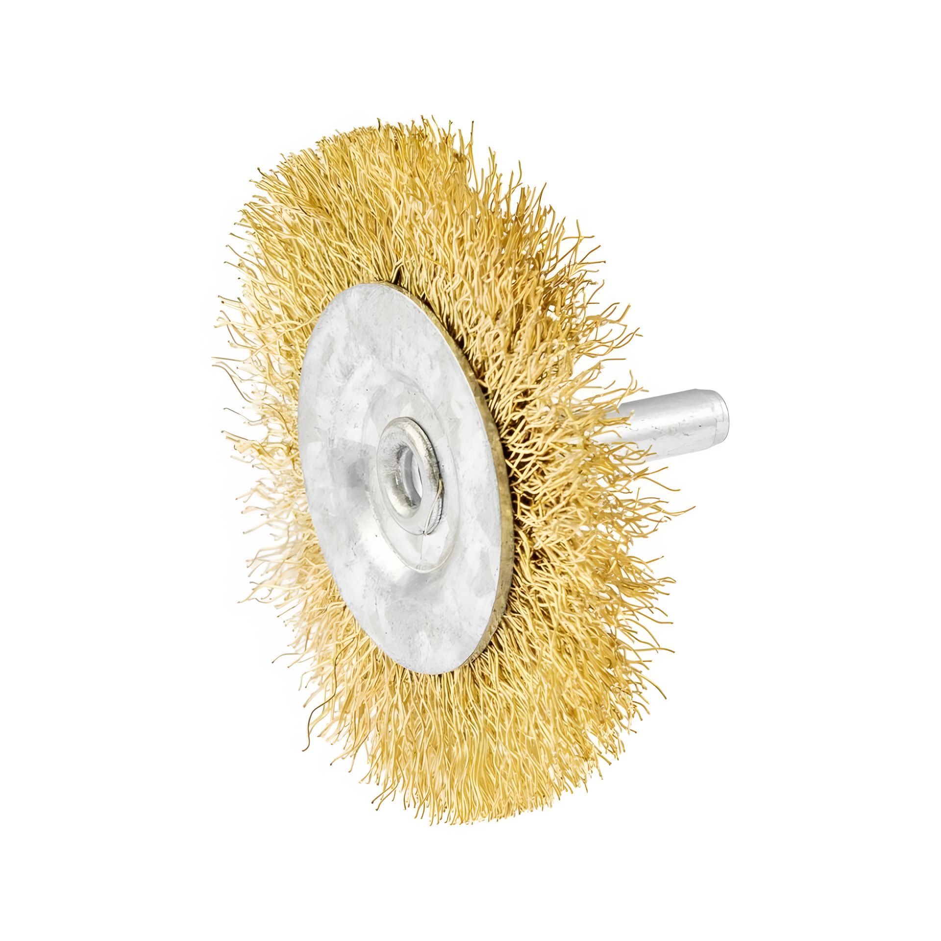 Щетка дисковая из латунированной рифленой проволоки Ø 75 мм со стержнем ¼" – эффективный инструмент для ручных дрелей. Латунированная рифленая проволока обеспечивает:
