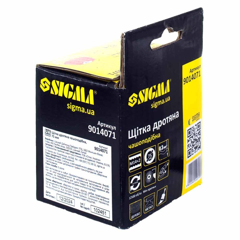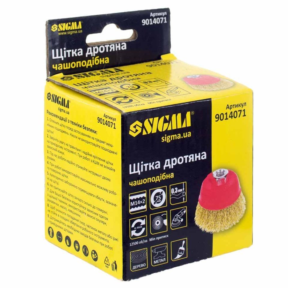 Щетка проволочная чашеобразная Ø75мм М14×2мм (латунированная) SIGMA (9014071)