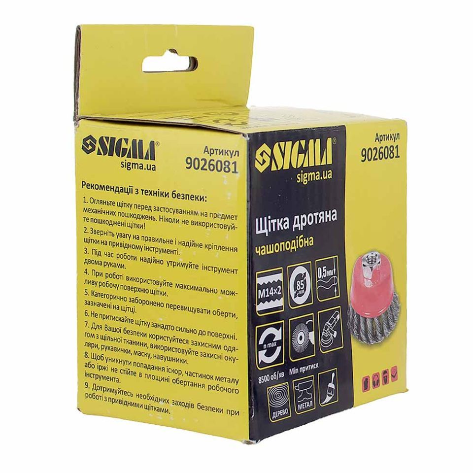 Щетка проволочная чашеобразная Ø85мм М14×2мм (стальная витая) SIGMA 9026081