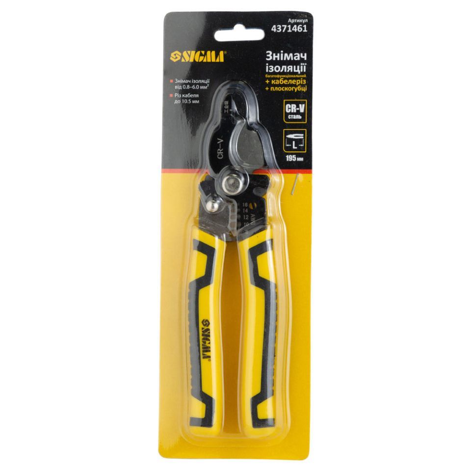 Съёмник изоляции многофункциональный + кабелерез + плоскогубцы 195мм SIGMA (4371461)