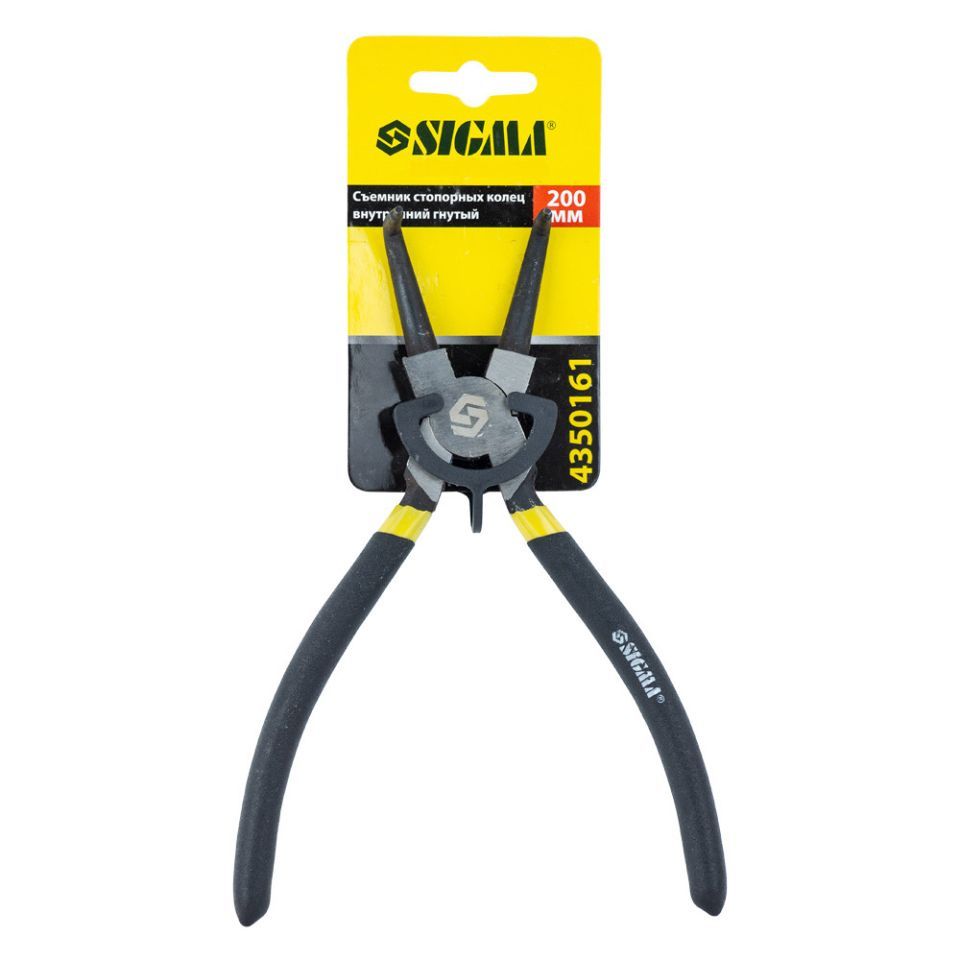 Съемник стопорных колец 200мм (внутренние гнутые) SIGMA (4350161) предназначен для монтажа и демонтажа внутренних и внешних стопорных колец. Изготовлены из высокоуглеродистой инструментальной стали, прошли термическую обработку.