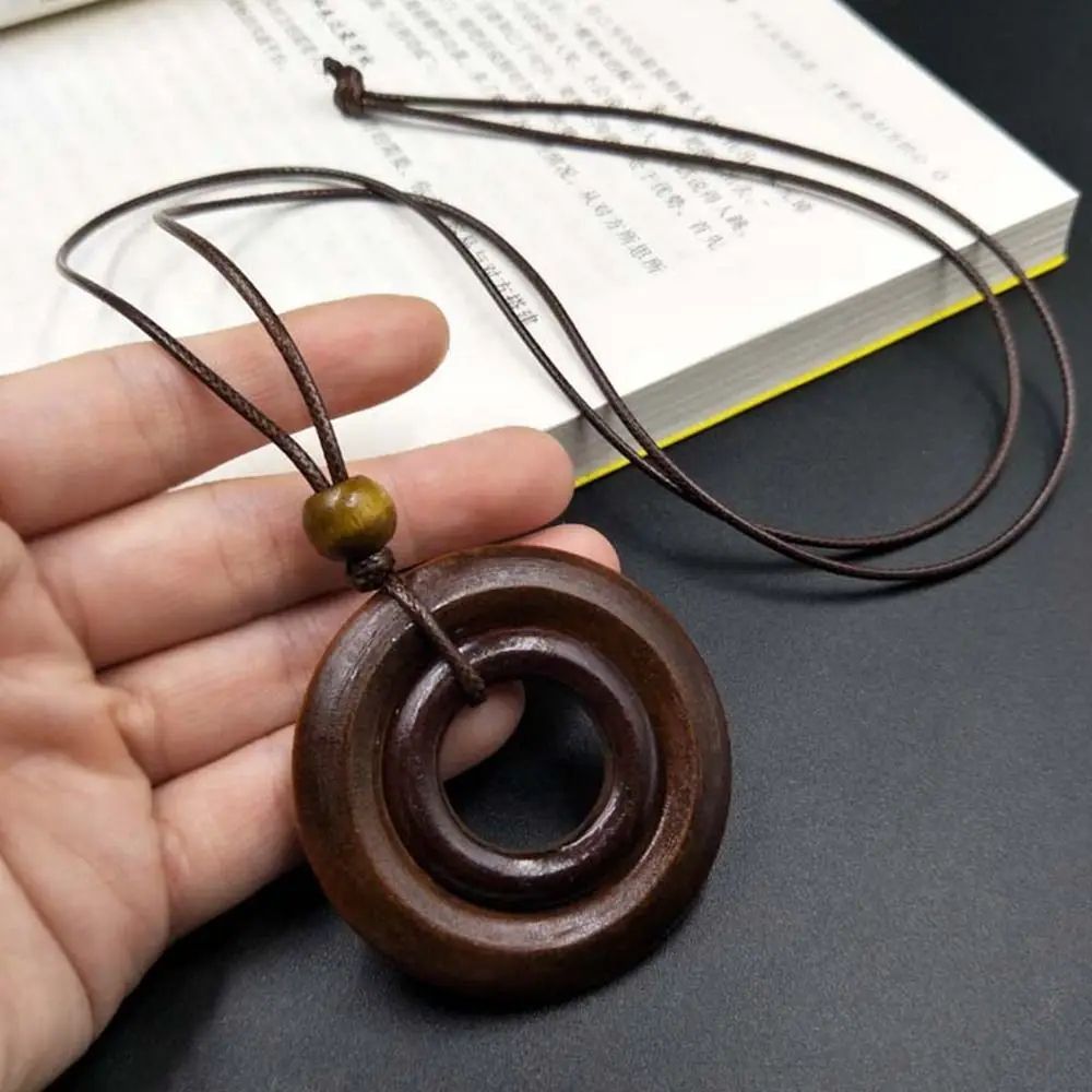 Подвеска двойной деревянный круг кулон круг на шнурке