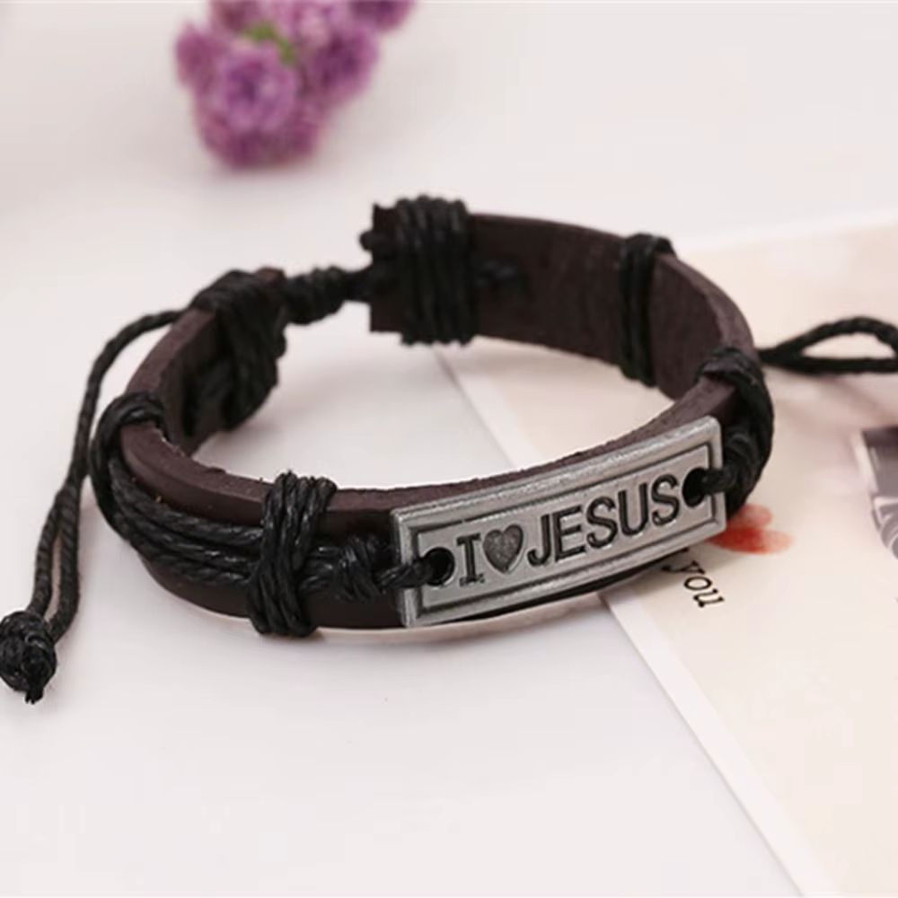 Браслет кожаный с надписью Я люблю ИИСУС христианский католический религиозный аксессуар