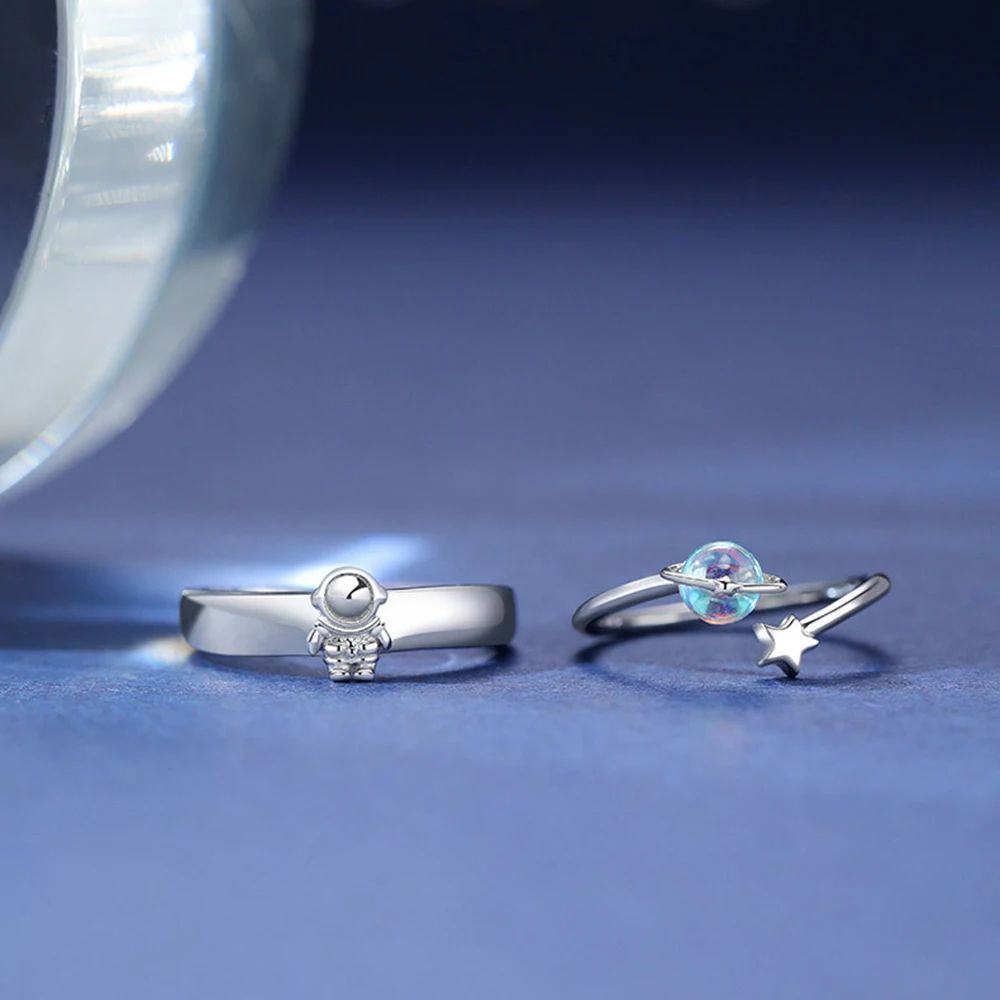 Набор парных колец планета астронавт лунный камень парные кольца для двух влюбленных