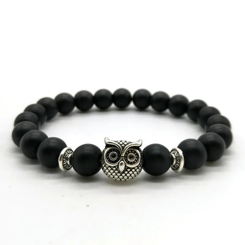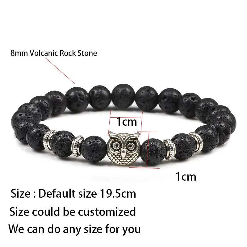 Браслет сова из шунгита с совой OWL черный вулканический камень