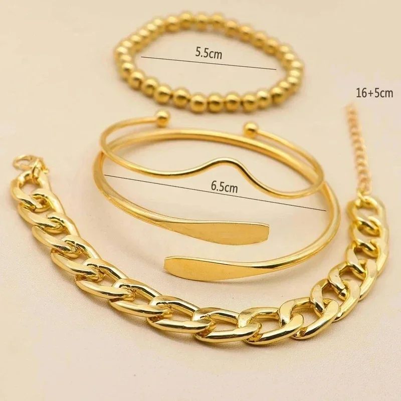 Браслеты 4шт набор кубинских цепных золотистых браслетов в стиле панк для женщин
