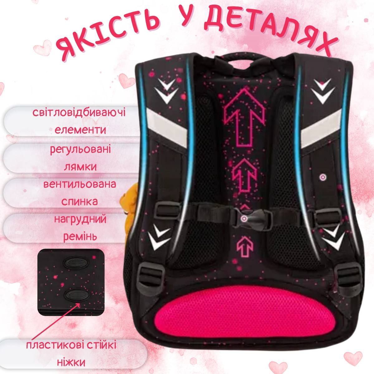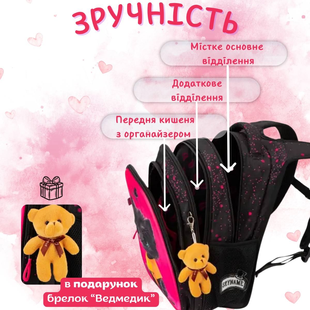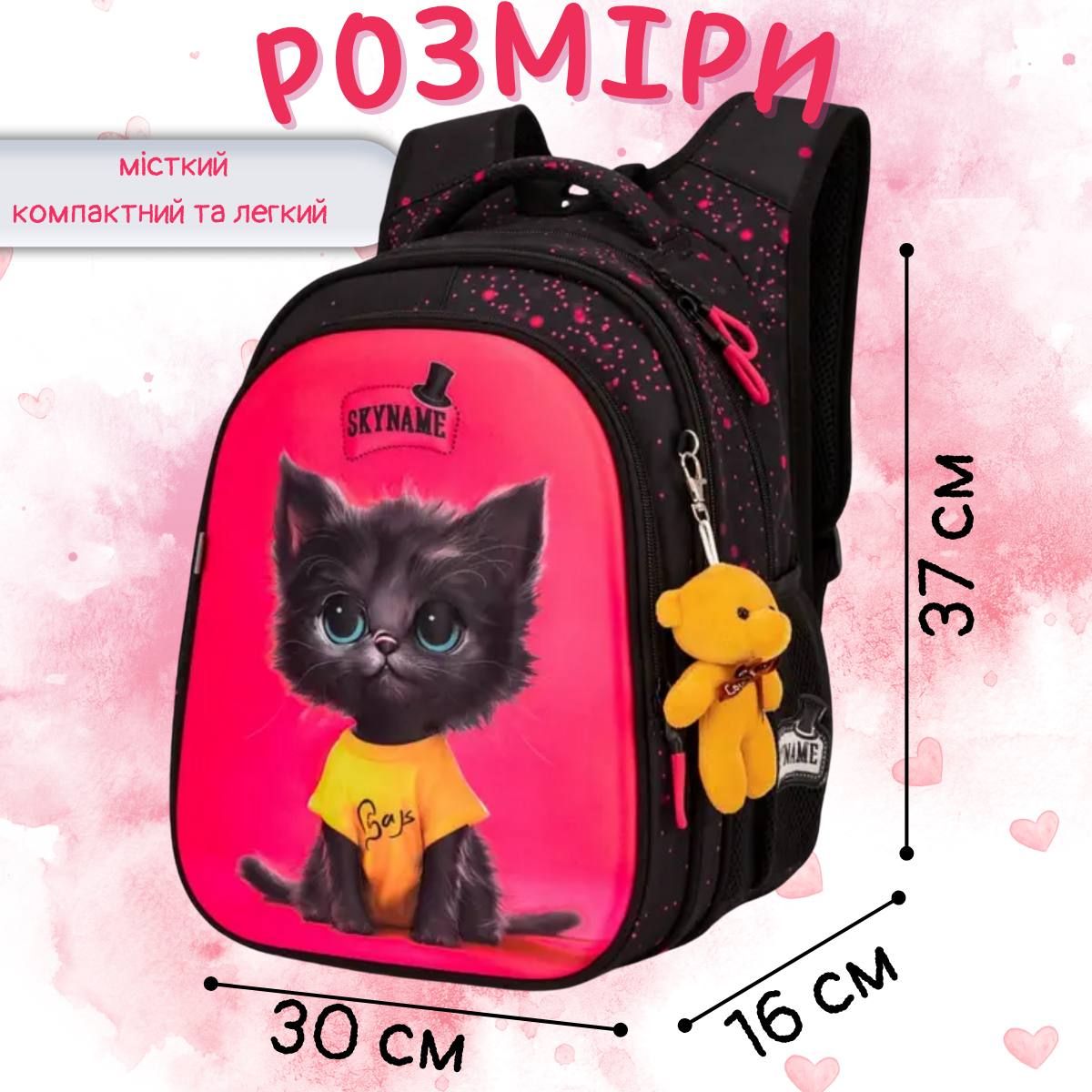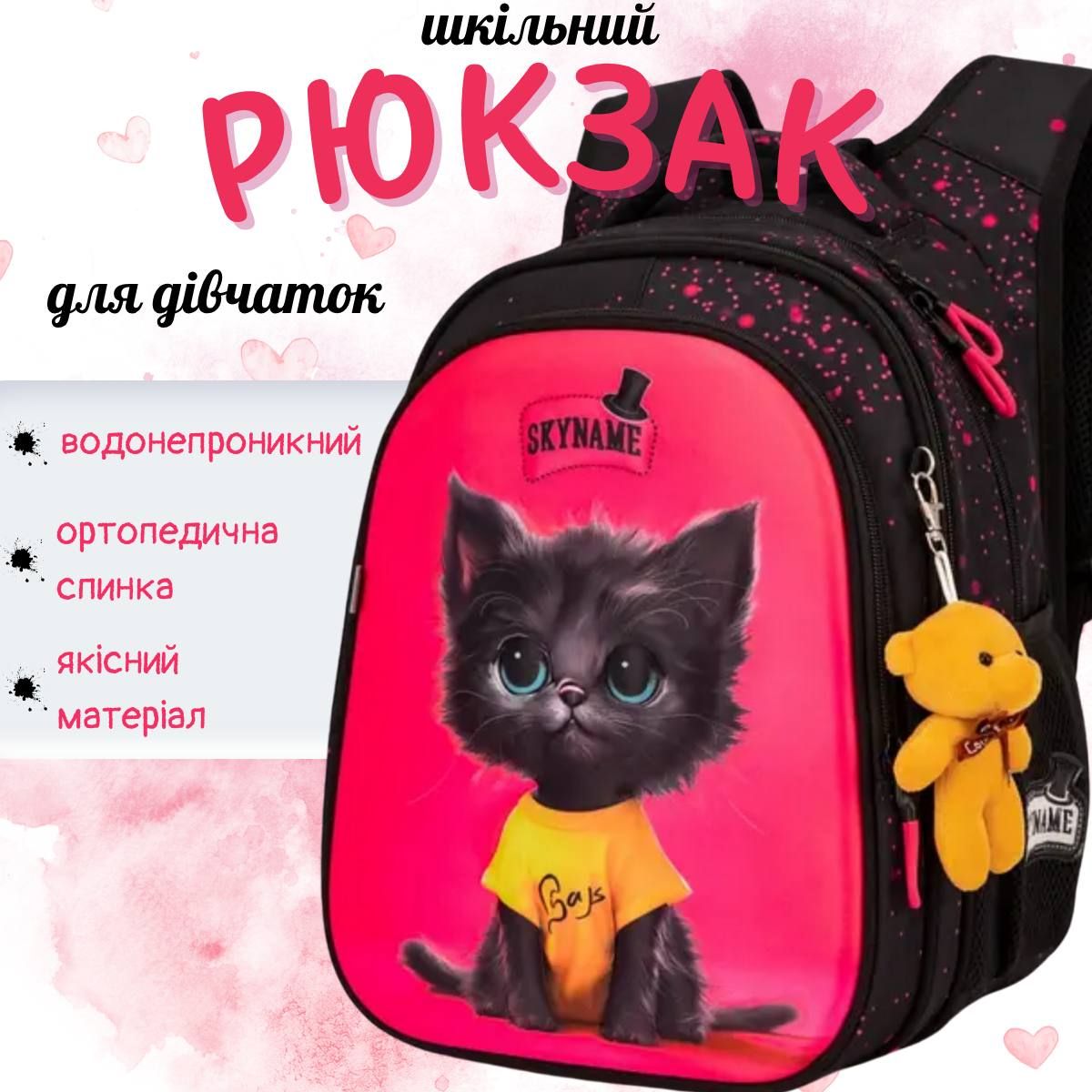 Школьный рюкзак для девочки, Котик, розовый с черным.