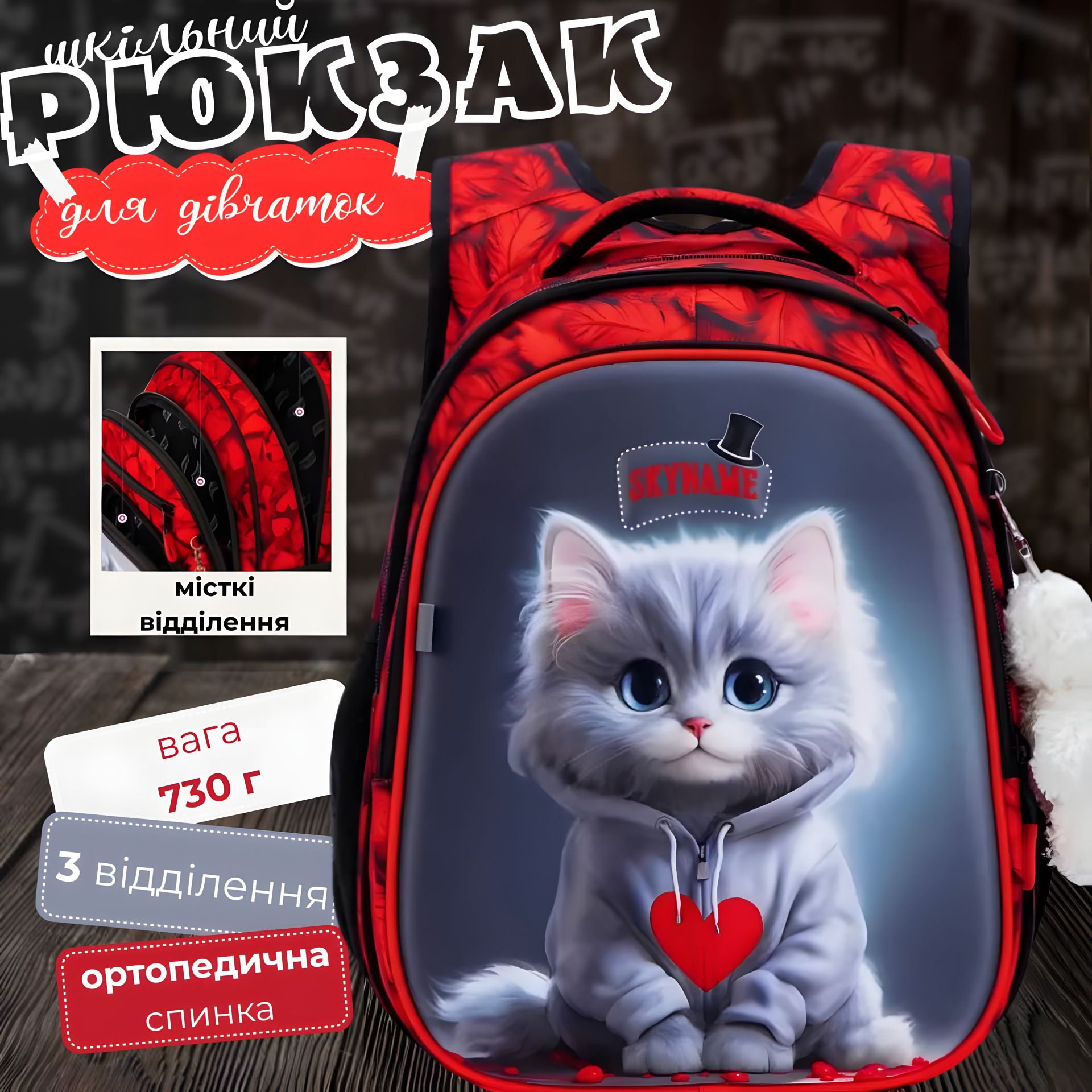 Школьный рюкзак Sky Name (Winner) для девочки 1-4 класс, принт Котенок, на 2 отделения В наличии