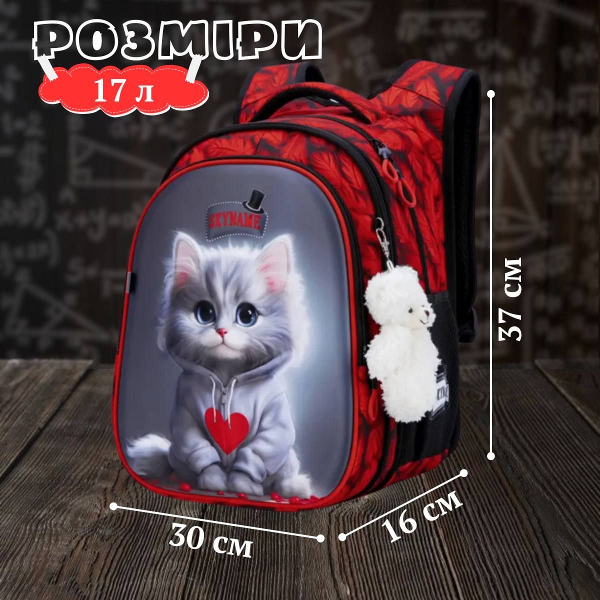 ОсобенностиАнатомическая спинка, светоотражающие элементы, яркий красный дизайн с мишкой в комплекте.