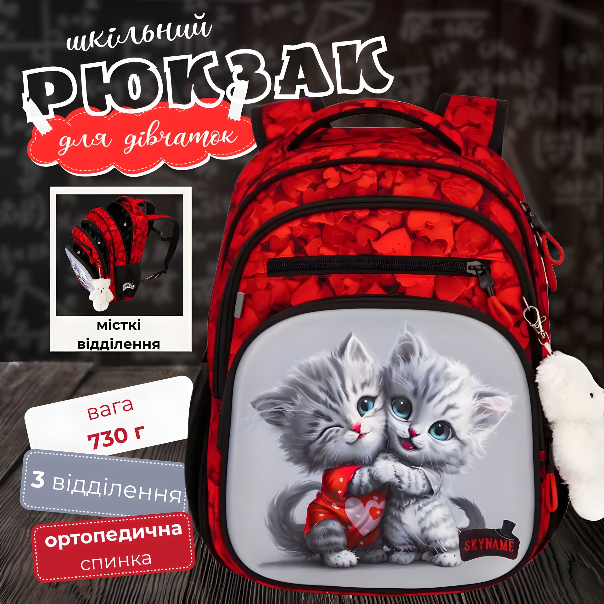 Детский рюкзак Sky Name (Winner) для девочки 1-4 класс, с принтом Котенок, на 2 отделения
