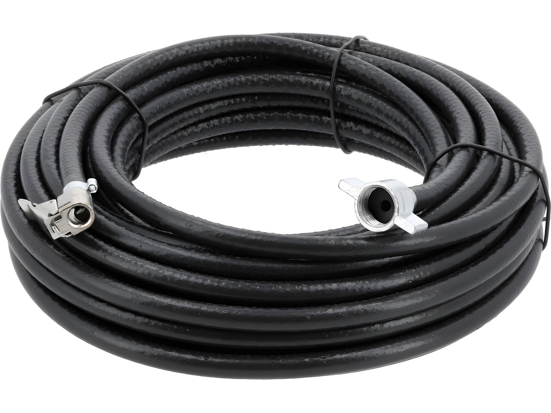 Профессиональный гибкий шланг для сжатого воздуха. Адаптирован к автомобилям с воздушным компрессором. Используется для закачки автобусов, грузовиков, полуприцепов, сельскохозяйственных тракторов и т.д. Позволяет закачивать все колеса даже в очень длинном автомобиле. Кабель заканчивается разъемами с обеих сторон. С одной стороны он заканчивается наконечником-бабочкой с внутренней резьбой M16x1,5 мм, адаптированным к автомобильным компрессорам. С другой стороны есть соединительный терминал, адаптированный к стандартному автомобильному крану. Шланг состоит из трёх слоев. Внутренняя часть изготовлена из мягкой ПВХ и плотной, текстильной армирующей полиэфирной оплетки. Наружный слой из атмосферостойкого ПВХ. наружный диаметр: 10 мм внутренний диаметр: 6 мм рабочее давление: 1,0 МПа (10 атм) при температуре окружающей среды 23 °С давление разрыва: 3,5 МПа (35 атм) при температуре окружающей среды 23 °C безопасный диапазон рабочих температур : от -20 °C до 60 °C вес: 0,5 кг