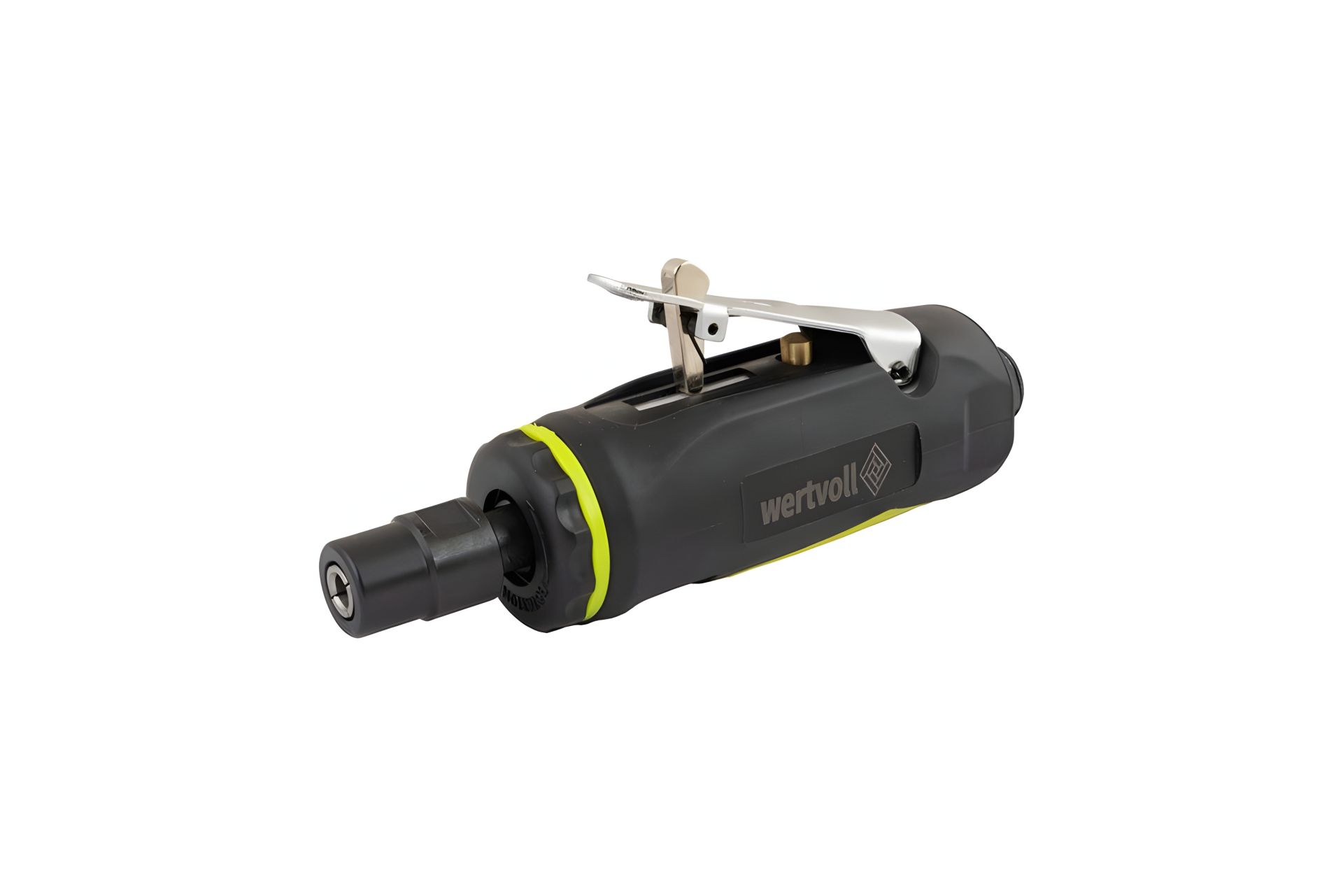Прямая пневматическая шлифмашина с цанговым зажимом 6 мм, 25000 об/мин, 100 л/мин, 6.3 bar, TPR покрытие корпуса, MASTERTOOL PN-2001