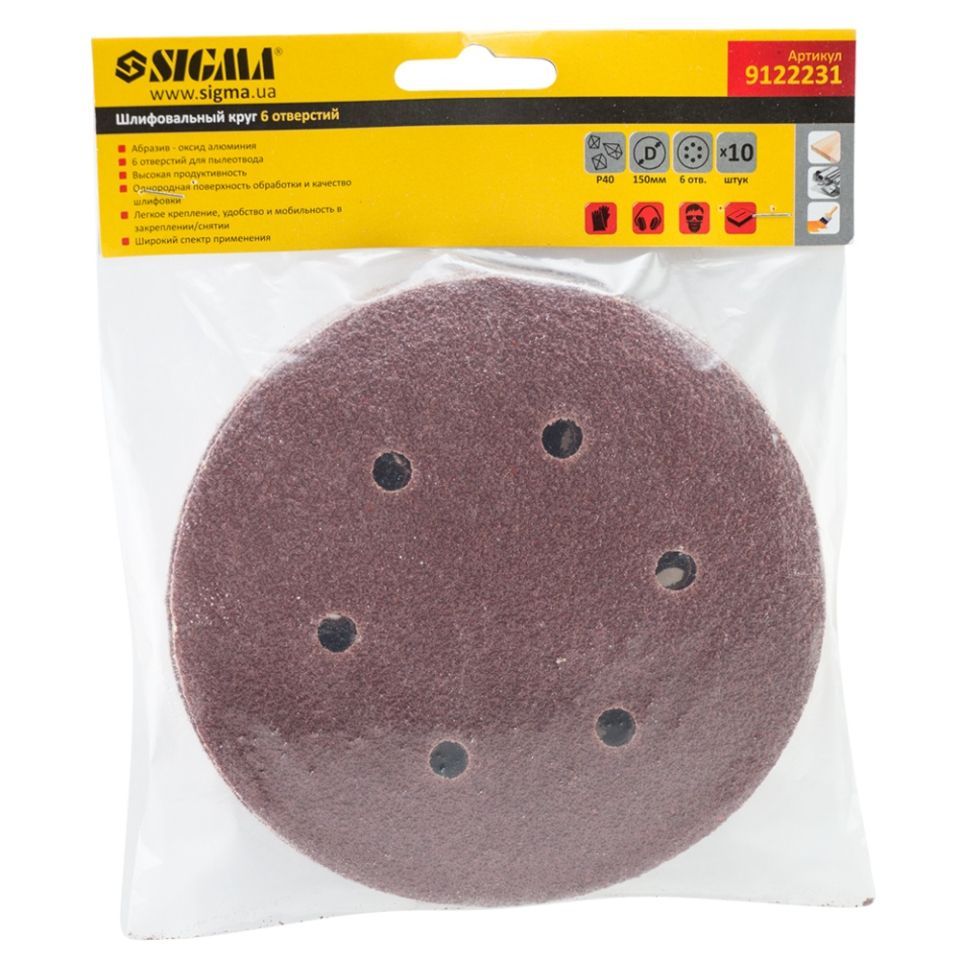 Шлифовальный круг 6 отверстий Ø150мм P40 (10шт) SIGMA 9122231