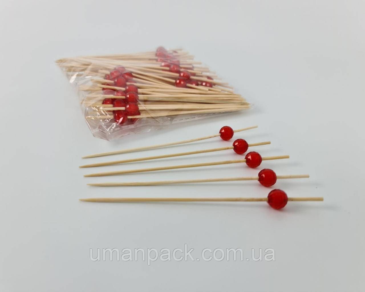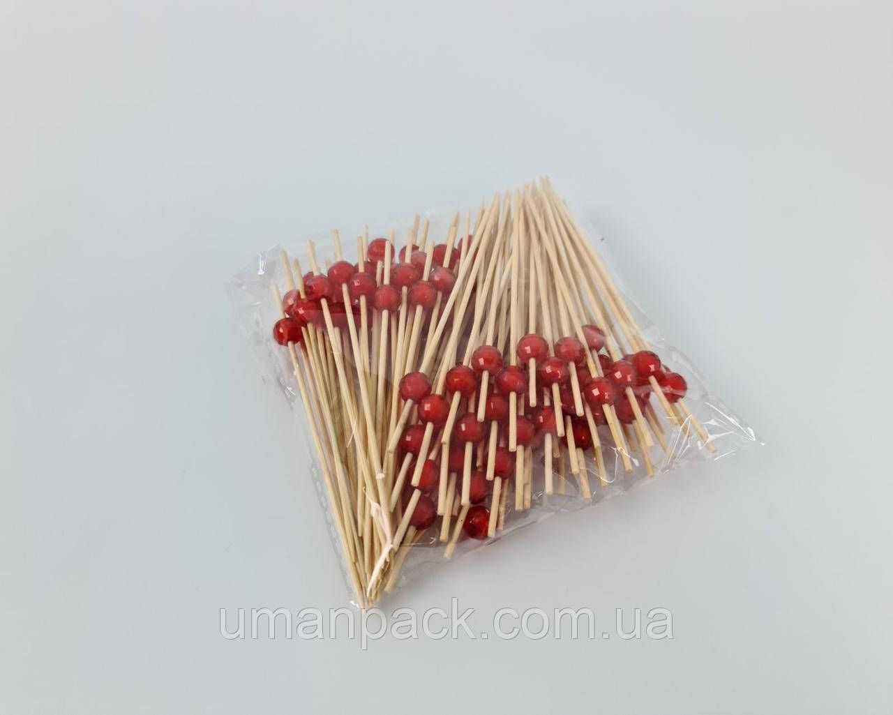 Шпажка для украшения блюд 12см"Красные бусинки " 100 шт (1 пачка)
