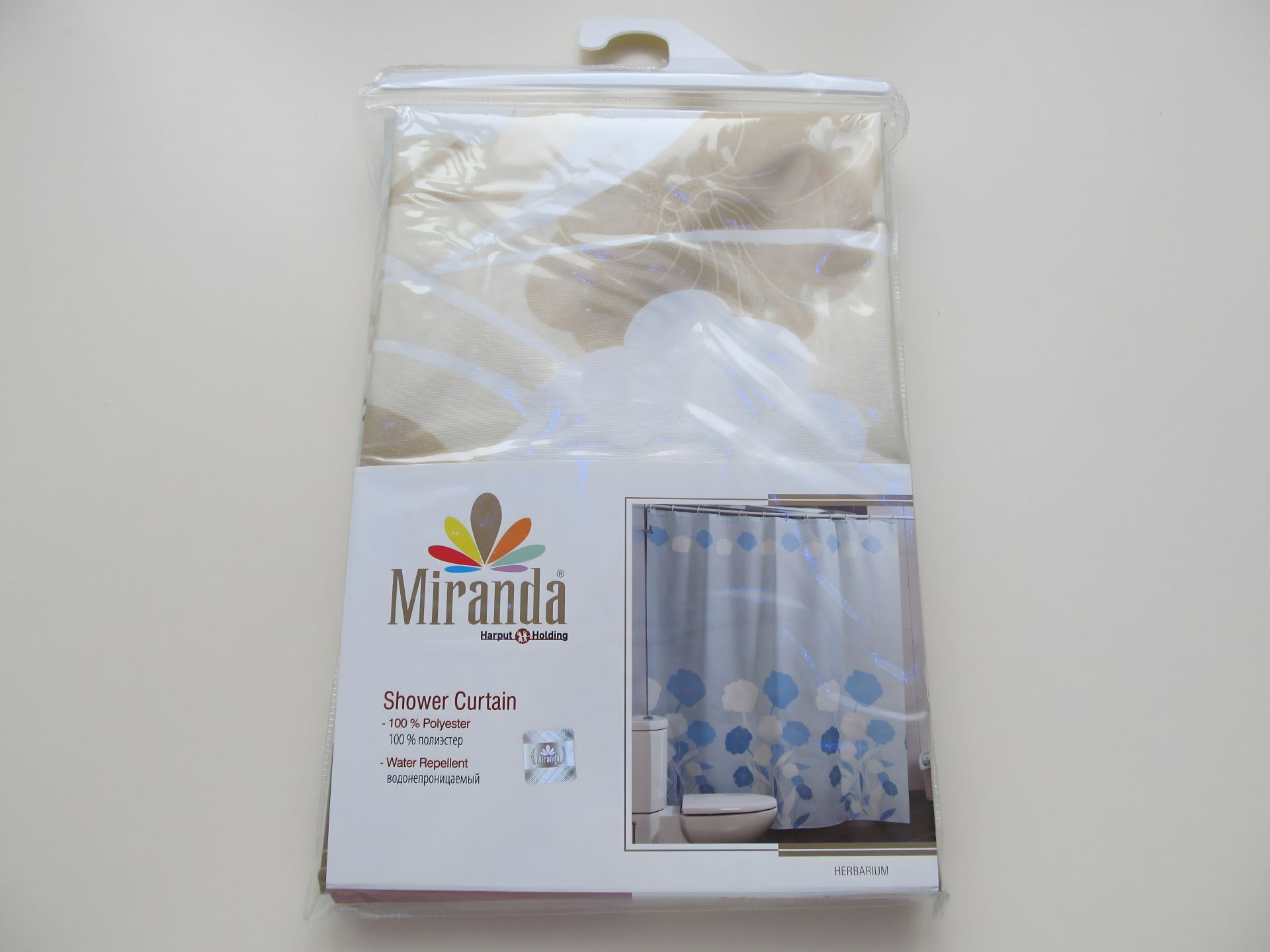 Штора для ванної та душа Miranda виробництва Туреччини. Склад 100% поліестер (тканина з водовідштовхувальним просоченням). Відмінна якість, не втрачає свого первісного вигляду навіть після багаторазового прання. Отвори під кільця оброблені пластиком. Кілець в комплекті немає, їх можна придбати додатково.
