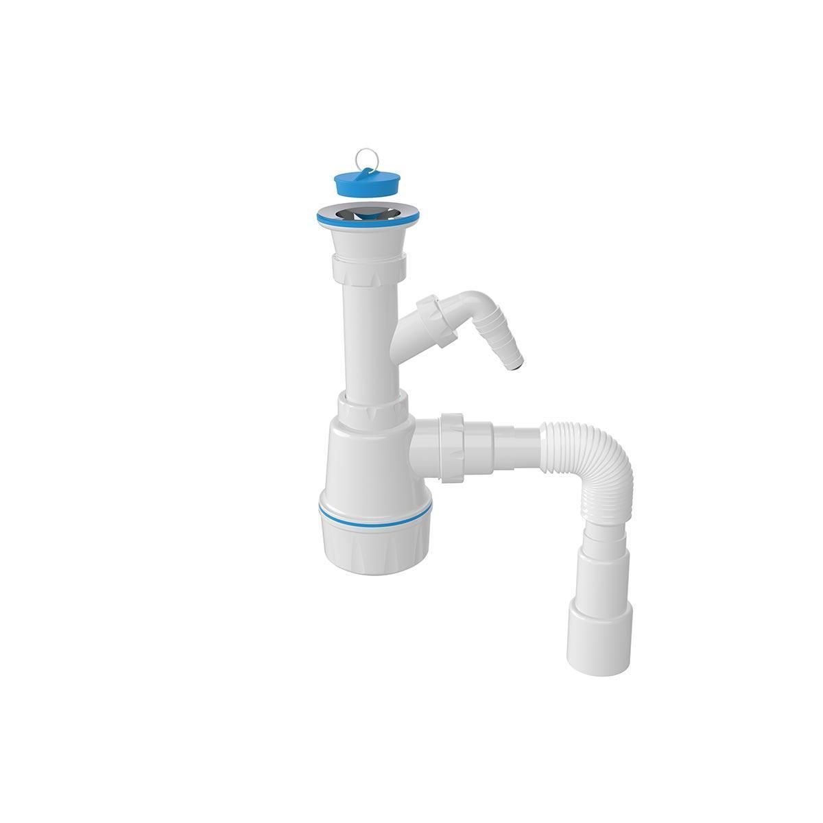 Сифон для мийки під пральну машину Nova 1061 виготовлений з високоякісного первинного поліпропілену. Металева частина випуску сифона та гвинт виготовлені з нержавіючої сталі, забезпечує неможливість їх окиснення. Конструктивною особливістю гайки кріплення випуску є те, що вона виготовлена з латуні та зафіксована в корпусі випуску способом гарячого пресування. Це забезпечує простоту монтажу сифона та гарантує брак корозії на елементах кріплення. Сифон комплектується гофротрубою з універсальним виходом у каналізацію діаметром 40/50 мм. Гофротруба приєднується до сифона нарізним з'єднанням 1 1/2" з конусною прокладкою. Наявність гофротруби спрощує монтаж сифона, а універсальний вихід 40/50 мм забезпечує під'єднання сифона до каналізації без додаткових редукційних перехідників. Основні параметри Nova 1061: З розбірним випуском З відведенням для пральної машини Без переливу Випуск: 70 мм Довжина гвинта: 65 мм Вихід: гнучка труба 1 1/2" Діаметр гофри: 40/50 мм