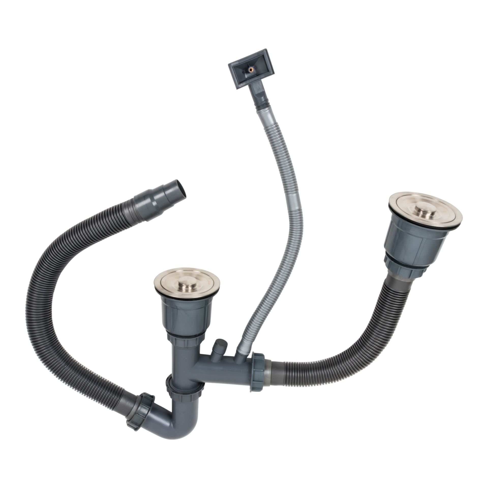Сифон двойной VALESO для моек Handmade (квадратный сифон, квадратный перелив)