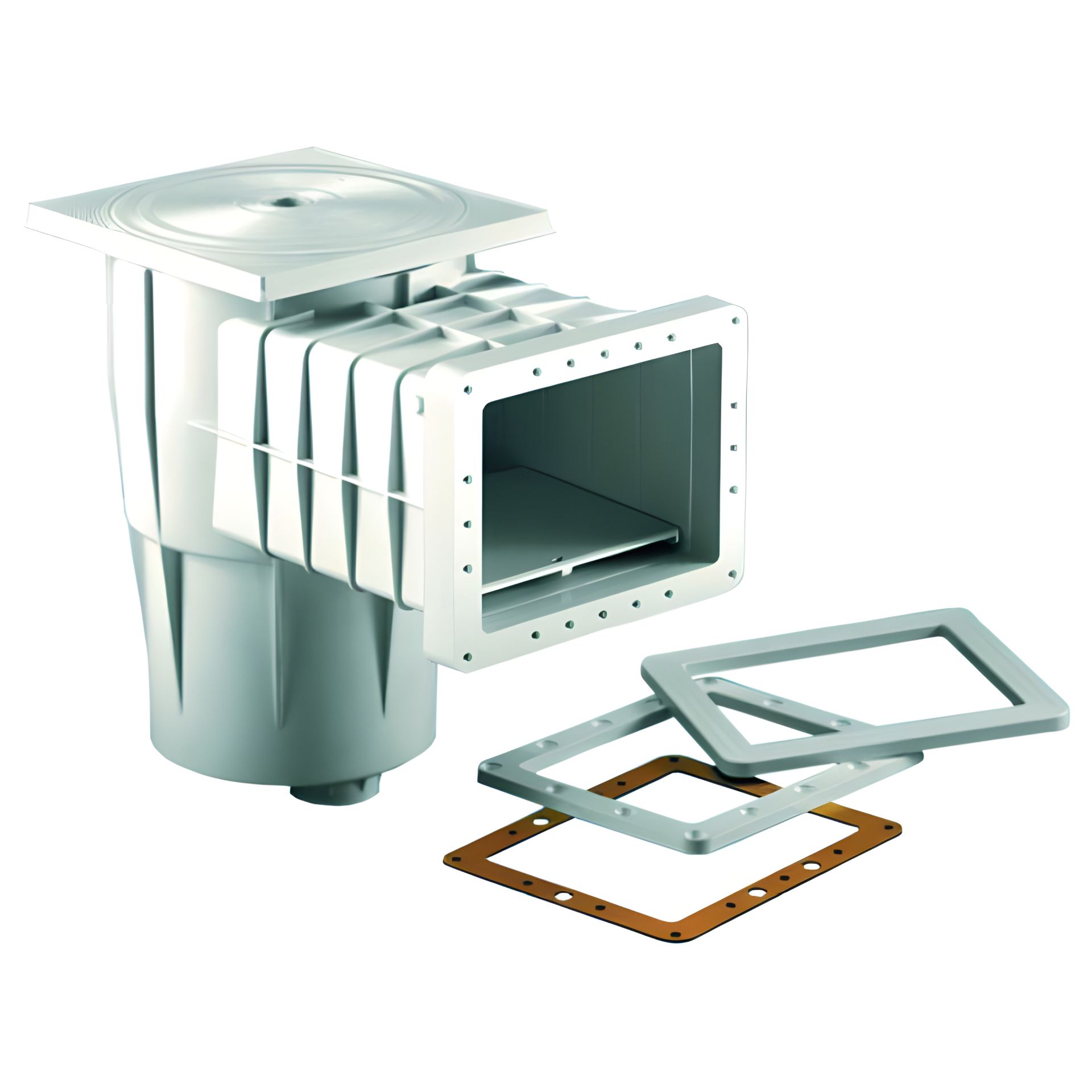 Скиммер для бассейна Kripsol SKSL.C из ABS-пластика для бетонных бассейнов с облицовкой лайнера и композитных чаш. Используется как закладной элемент для забора воды из чаши на систему фильтрации, сбора поверхностного мусора и уборка бассейна с помощью ручного пылесоса. Мусор собирается в скиммерную корзину, в которую также помещают таблетки для дезинфекции воды. Комплектуется фланцами, резиновыми прокладками и болтами для крепления ПВХ пленки.