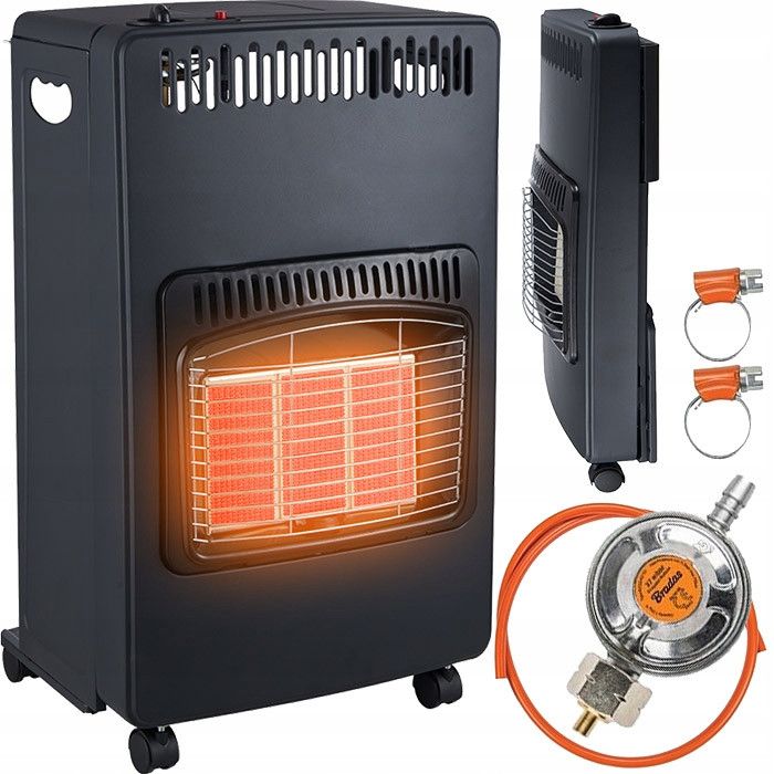Складной газовый обогреватель мощностью 4,2 кВт – это простое устройство, которое можно использовать в качестве источника теплого воздуха. Он имеет три керамические пластины, выполняющие роль нагревательных элементов. Они эффективно и равномерно обогревают как небольшие, так и большие помещения.