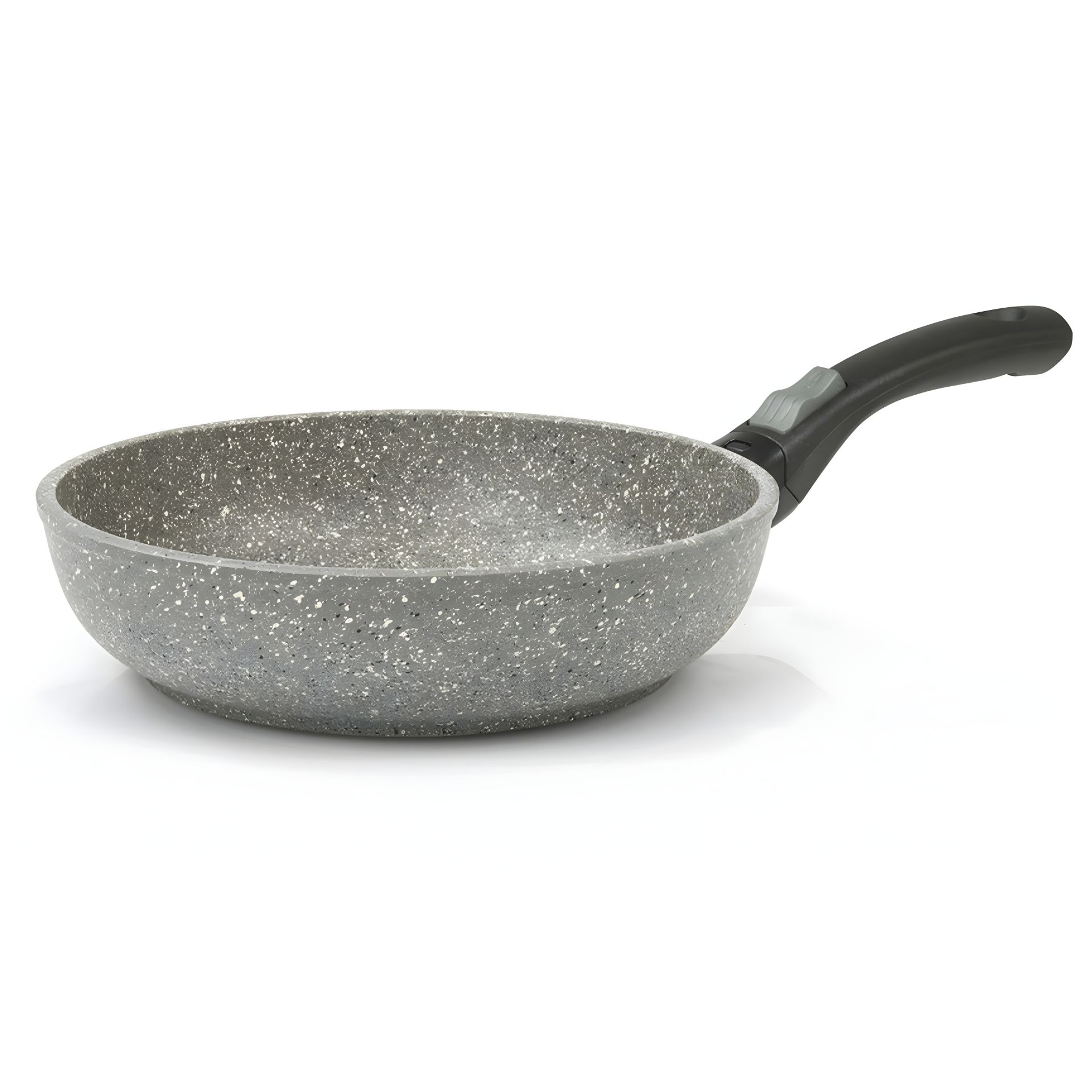 REMOVABLE HANDLE - Благодаря съемной ручке эту сковороду можно использовать для приготовления пищи в духовом шкафу при температуре до 220°С. Простой удобный и надежный механизм отсоединения ручки реализован с помощью большой кнопки, высвобождающей ручку при нажатии кнопки вниз. Съемная ручка универсальна и подходит к другим сковородкам Flonal серии Monolite.