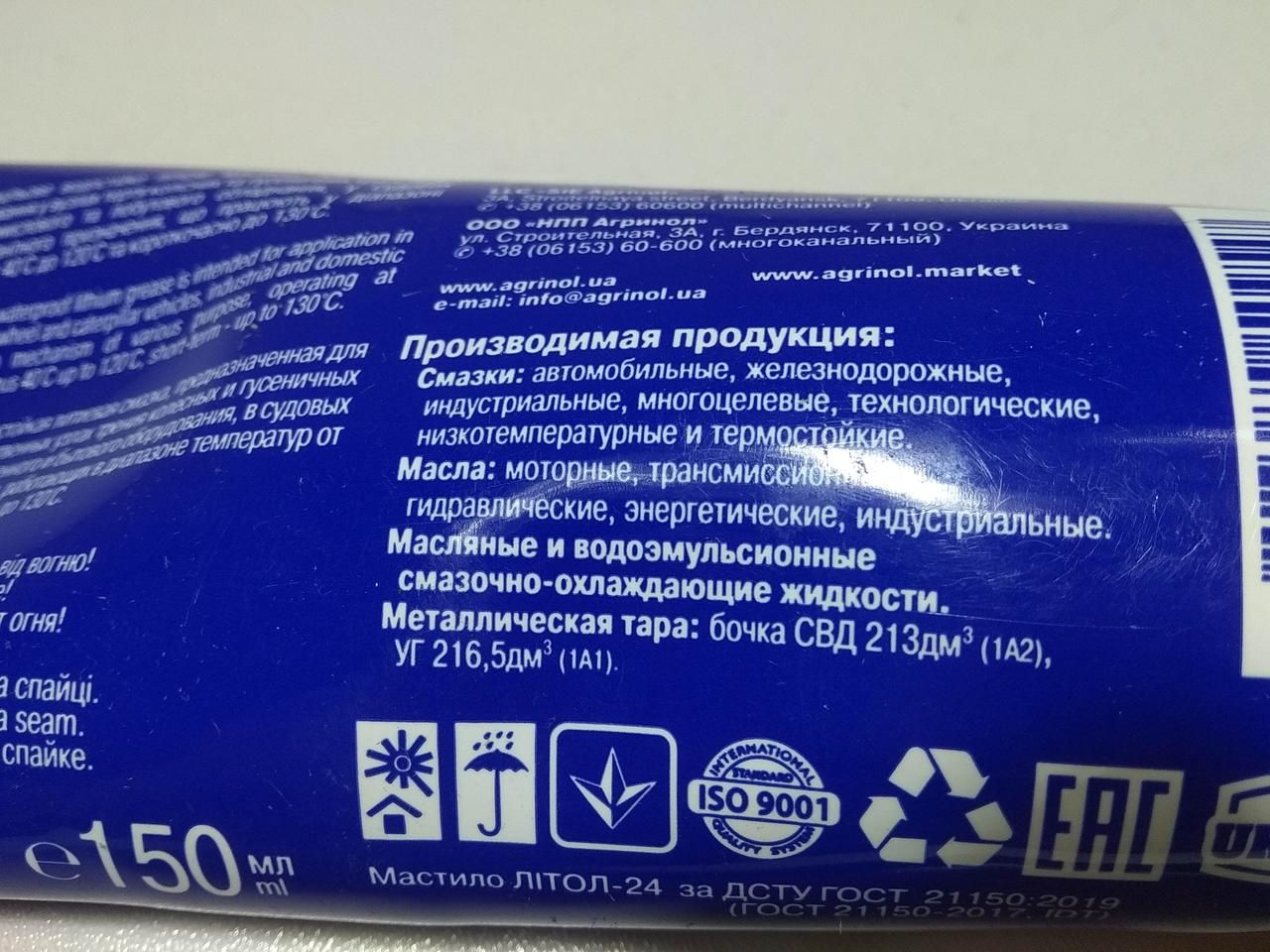 Смазка ЛИТОЛ-24, Agrinol (150 г.) (000136169)