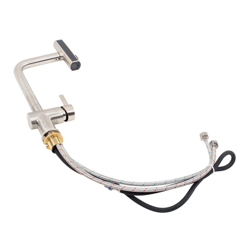 Выдвижной шланг: обеспечивает свободу движения, позволяя удобно промывать каждый уголок раковины.