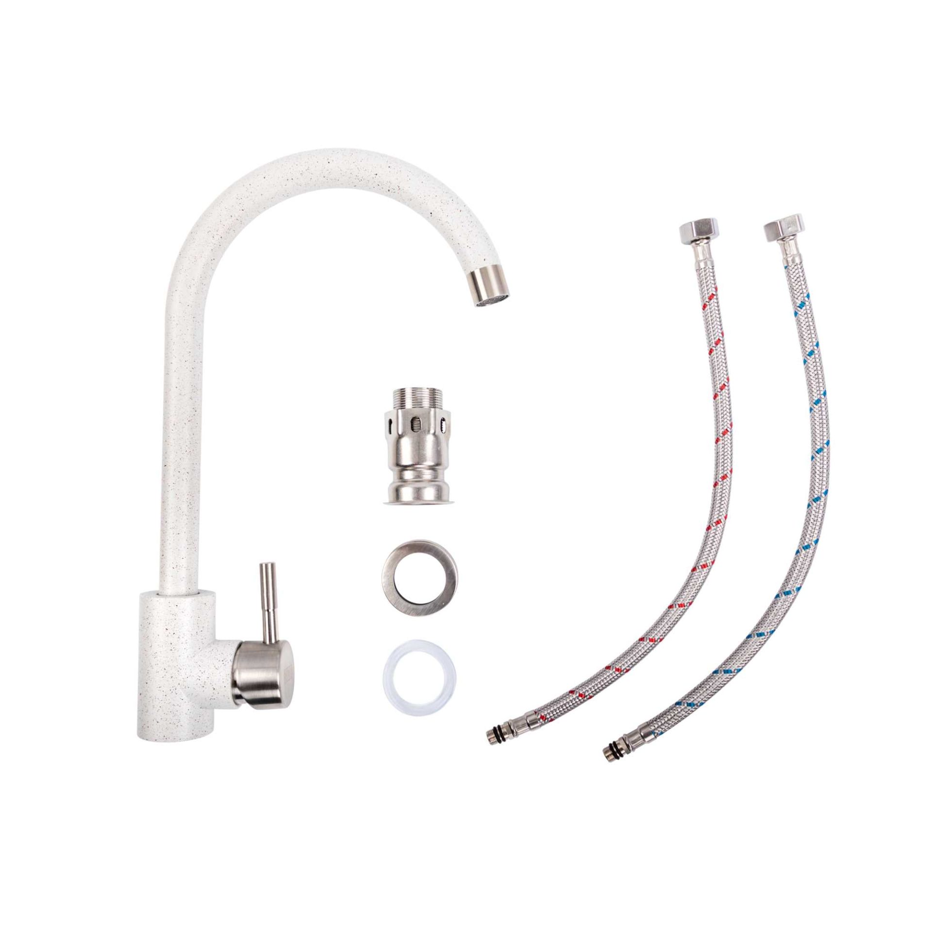 Смеситель кухонный Platinum 56 NESP хорошо сочетается с классическими круглыми, прямоугольными и квадратными мойками. Вы можете подобрать данный смеситель в цвет мойки из искусственного камня. Он обладает высоким поворотным изливом, что облегчает мытье посуды и обеспечивает минимальное разбрызгивание воды.