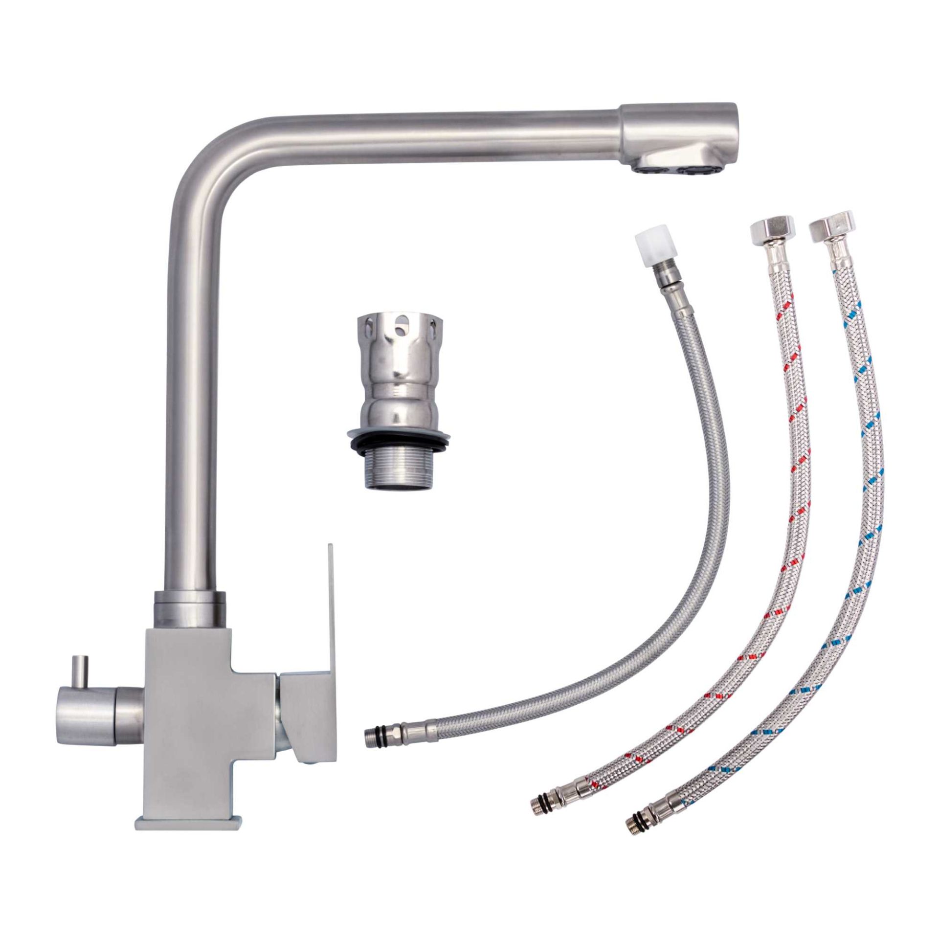 Смеситель для кухни Platinum производится из нержавеющей стали, что обеспечивает надежность и привлекательный внешний вид. Гарантия на смеситель 12 месяцев.