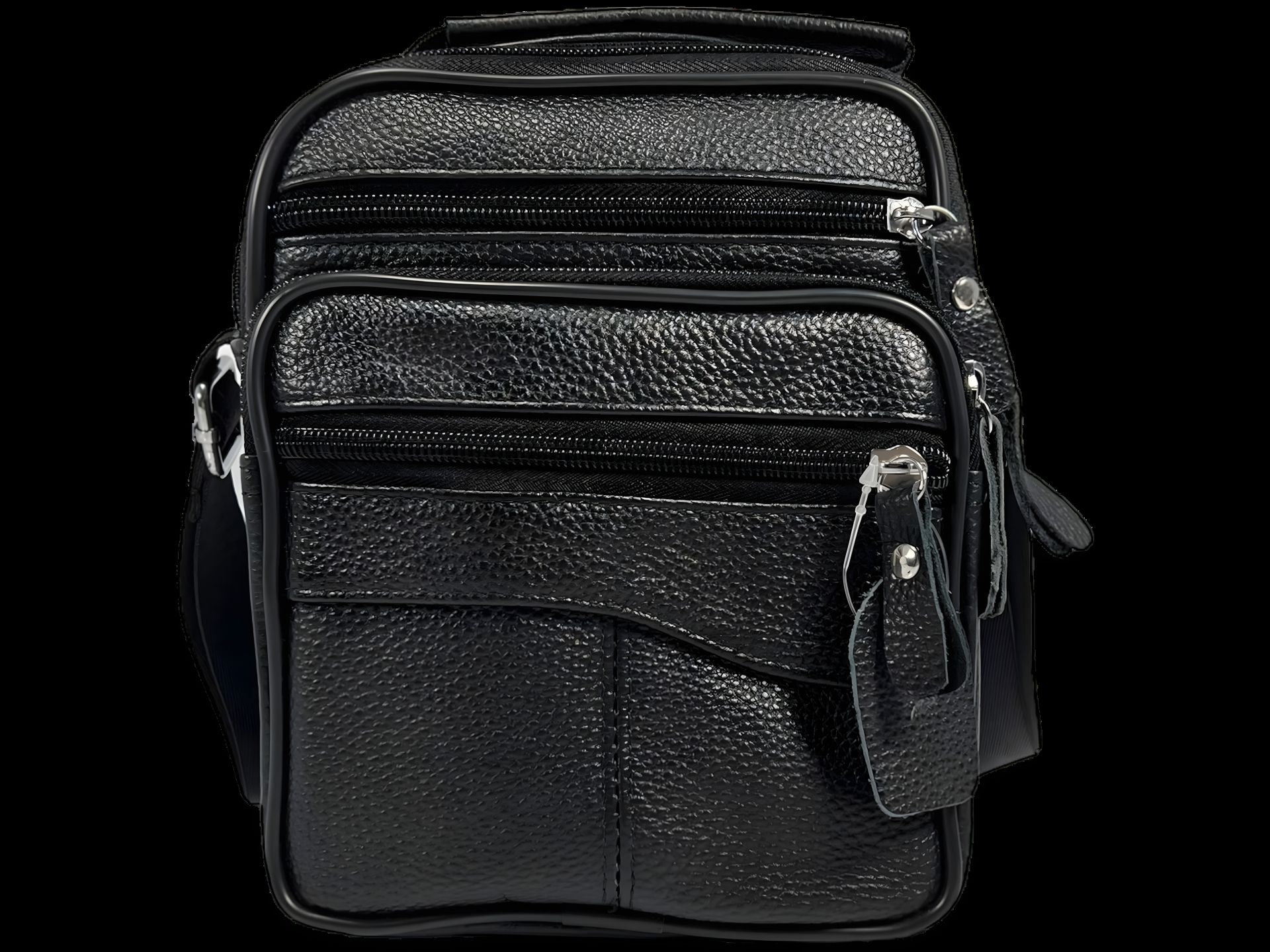 Кожаная сумка через плечо на четыре отделения, чёрная, 3 л, с ручками для переноса