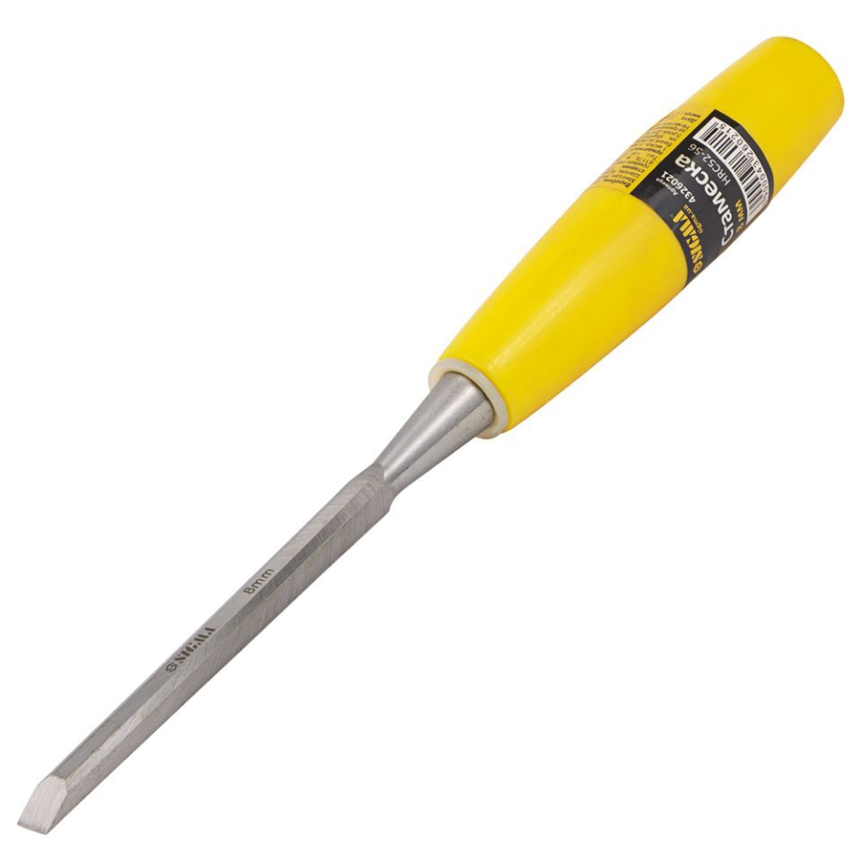 Стамеска 8мм пластиковая рукоятка SIGMA (4326021) используется для выборки гнёзд и пазов небольшой величины, для работ с мягкими и твёрдыми породами дерева, для строгания, а также прорезания различных отверстий. Инструмент изготовлен из высококачественной инструментальной стали высшего качества и имеет долгий срок службы, за счёт специальной термообработки.