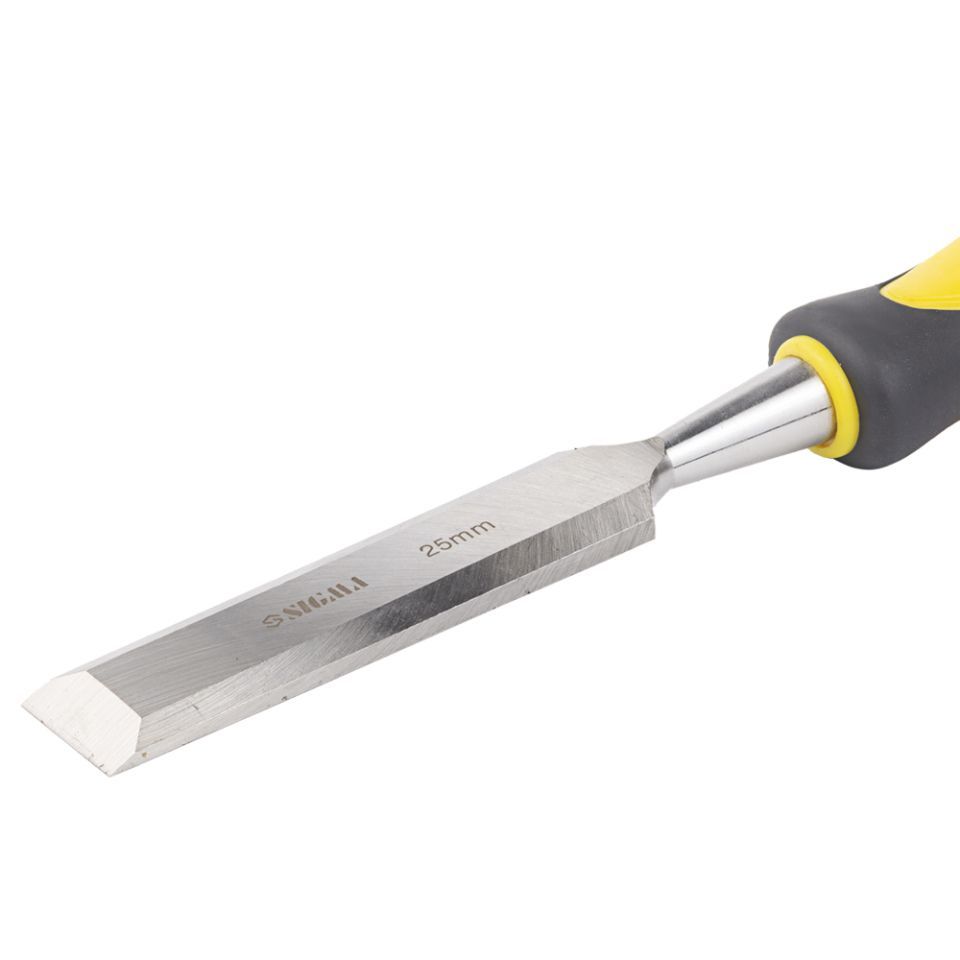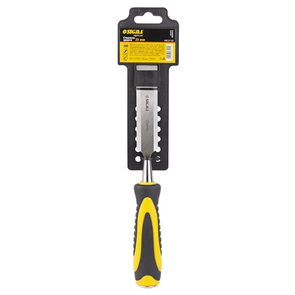 Стамеска ударная 25мм двухкомпонентная рукоятка CrV SIGMA (4326411) с обрезиненной ручкой используется для выборки гнёзд и пазов, вырезания отверстий в древесине твердых и мягких пород с использованием молотка или киянки. Изготовлена из высококачественной хромованадиевой стали, усиленная и ударопрочная, что гарантирует высокий комфорт работы.