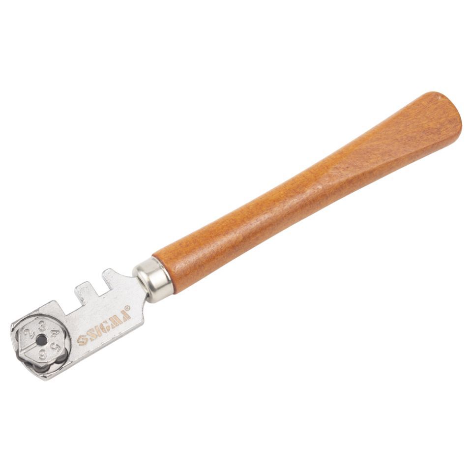 Стеклорез 6-ти роликовый SIGMA (8222021) состоит из 6 легко заменяемых режущих роликов, обладает 2 пазами (3мм и 5мм) для отламывания стекла. Удобная деревянная лакированная ручка. Предназначен для ручной резки стекла толщиной 3-8мм.