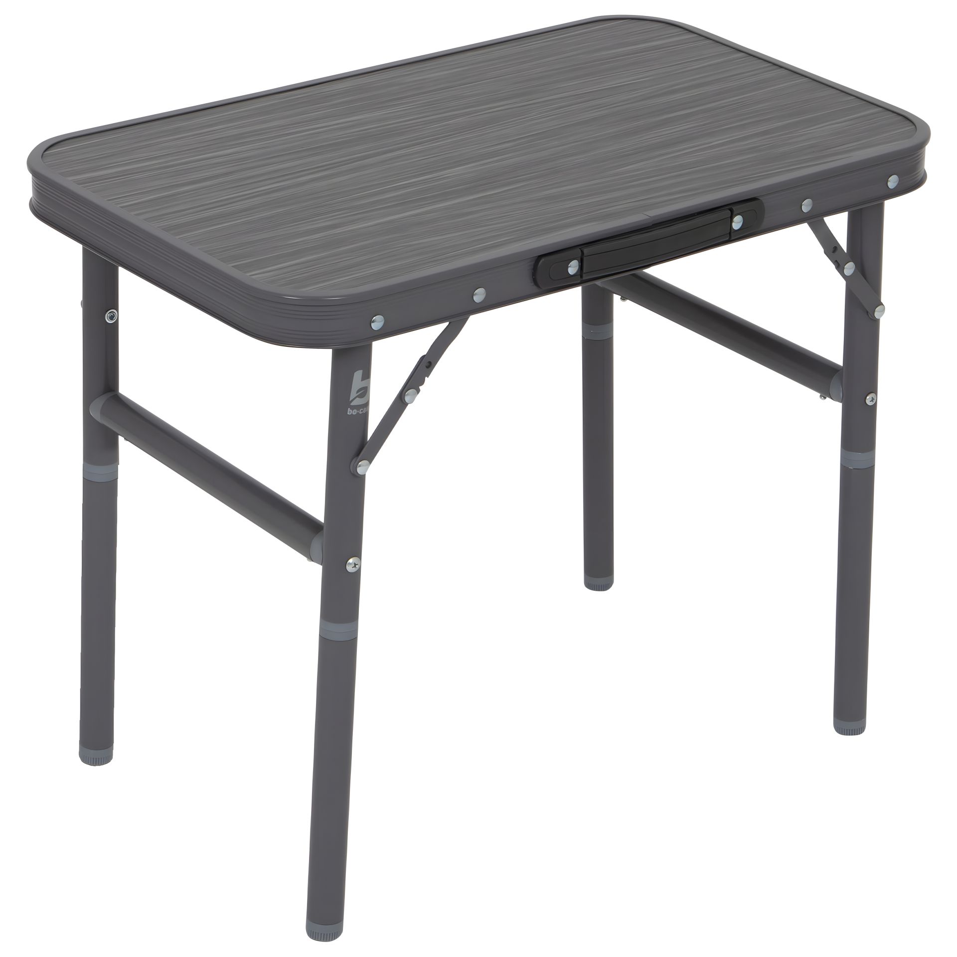 Bo-Camp Logan 56x34 cm Grey в сложенном виде имеет толщину менее 4 см, что делает его удобным для хранения. Ножки крепятся в специальных пазах под столешницей.