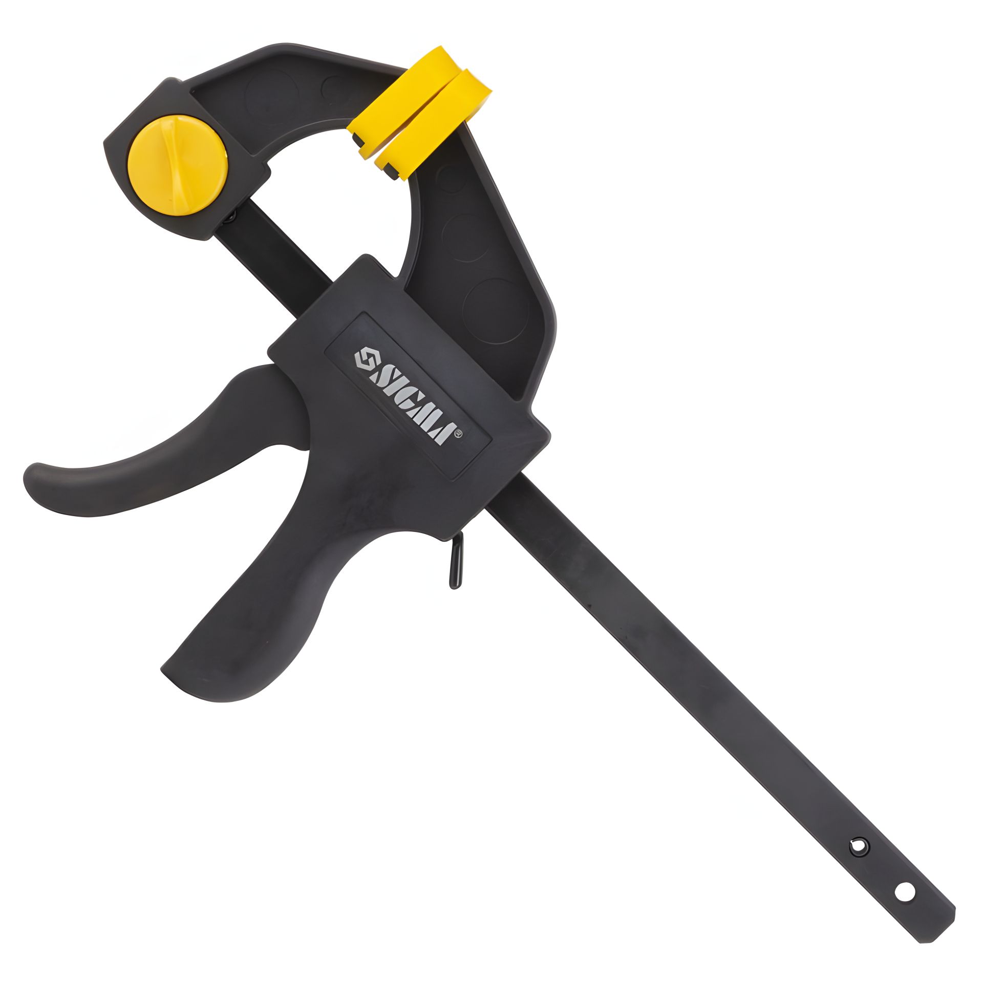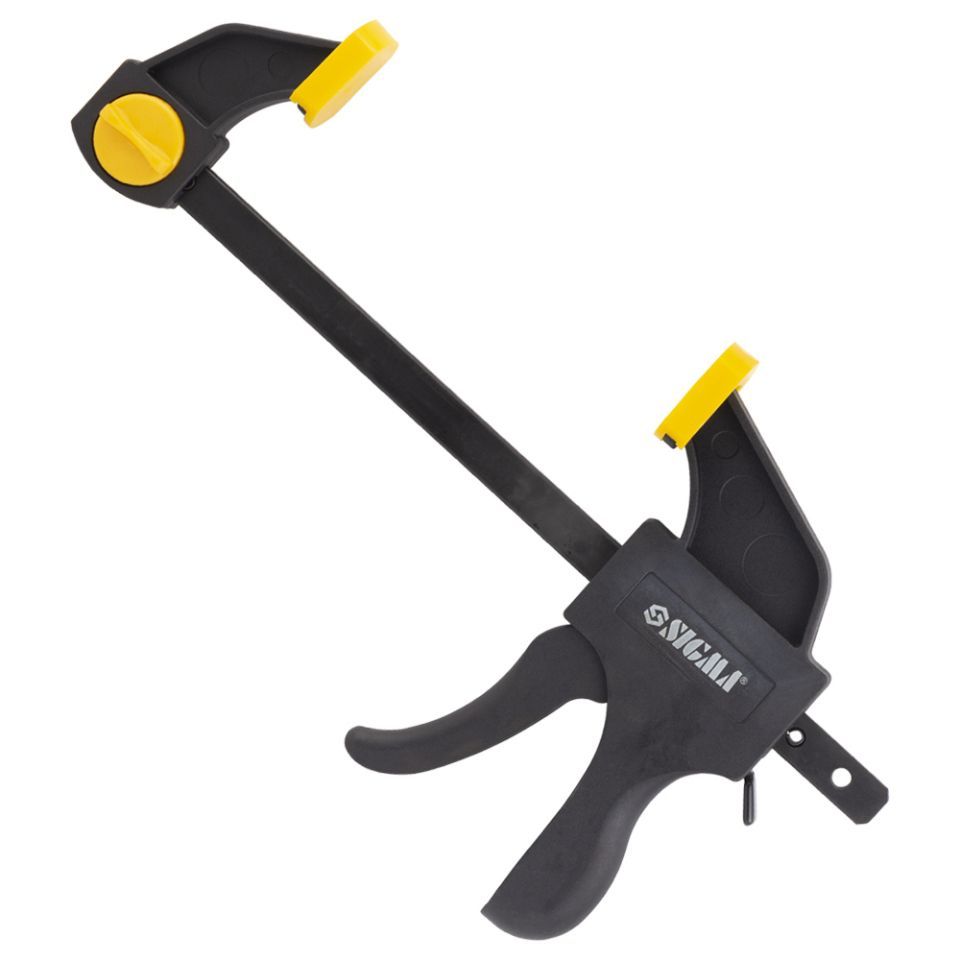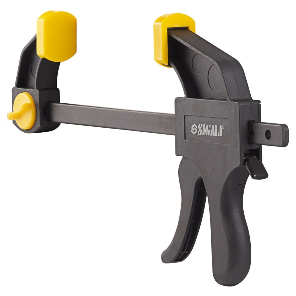 Струбцина быстрозажимная 150×60мм SIGMA (4243211) применяется для зажатия и фиксации различных заготовок и деталей при склеивании и других столярных работах.