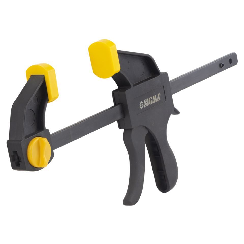Струбцина быстрозажимная 200×60мм SIGMA (4243221) применяется для зажатия и фиксации различных заготовок и деталей при склеивании и других столярных работах.