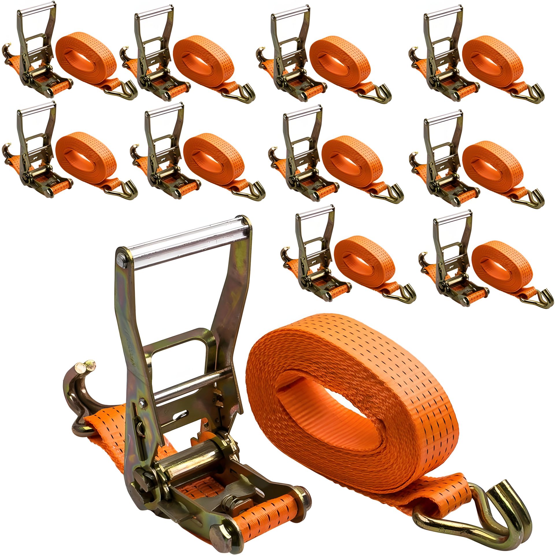 Стяжной ремень или ретчет используется для безопасного и надежного крепления различных грузов при перевозке. Состоит из ленты, крюков либо D-образных звеньев и трещотки (храпового механизма), предназначенного для натяжения ленты. За счет натяжения ленты стяжные ремни исключают перемещение и сползание груза во время транспортировки. Мягкая лента из полиэстера не повреждает и не царапает груз и упаковку. Соответствуют европейскому стандарту EN 12195-2.