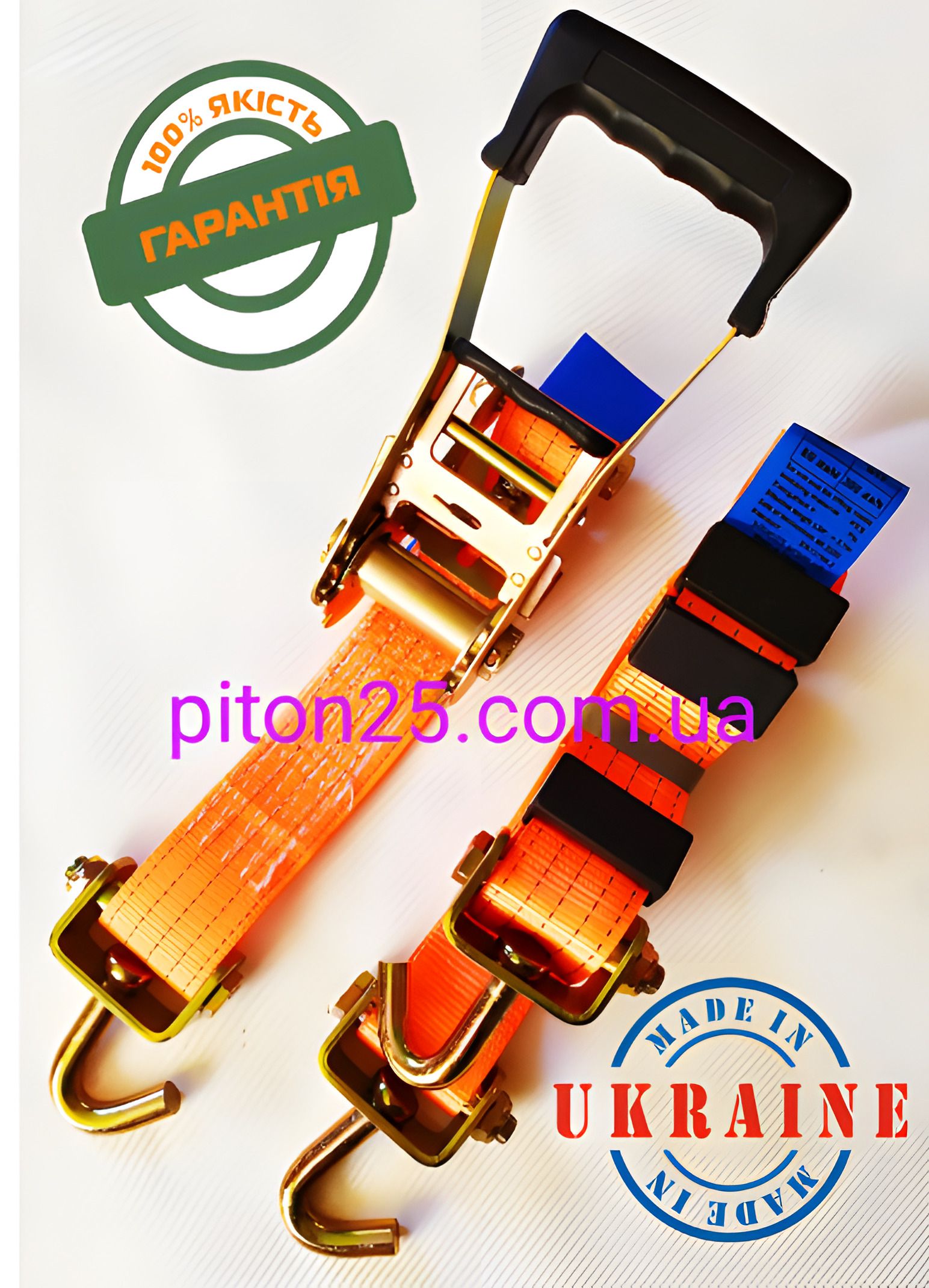 Автомобильный стяжной ремень РСА-5-4У "Люкс" с поворотными крюками