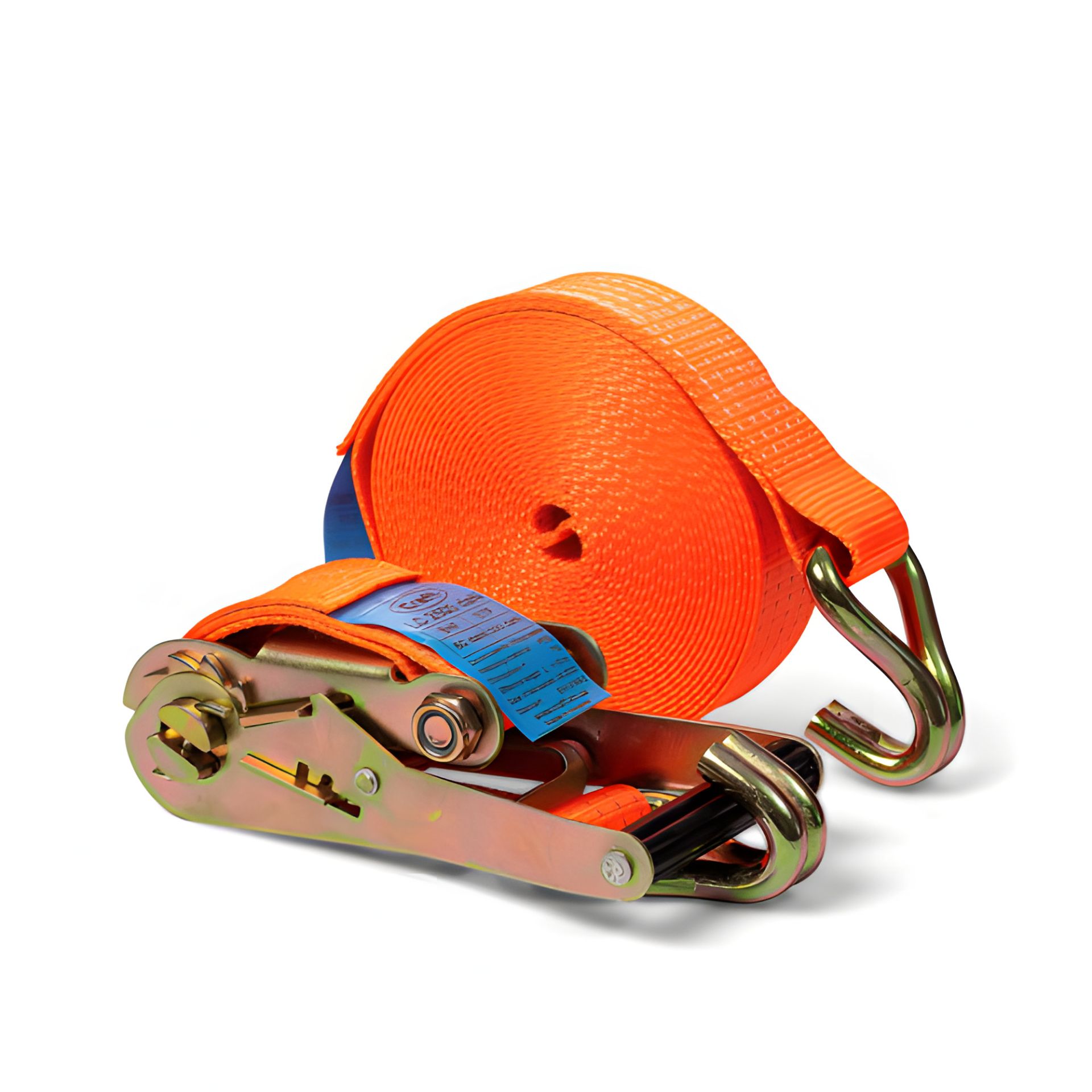 Стяжной ремень или ретчет используется для безопасного и надежного крепления различных грузов при перевозке. Состоит из ленты, крюков либо D-образных звеньев и трещотки (храпового механизма), предназначенного для натяжения ленты. За счет натяжения ленты стяжные ремни исключают перемещение и сползание груза во время транспортировки. Мягкая лента из полиэстера не повреждает и не царапает груз и упаковку. Соответствуют европейскому стандарту EN 12195-2.
