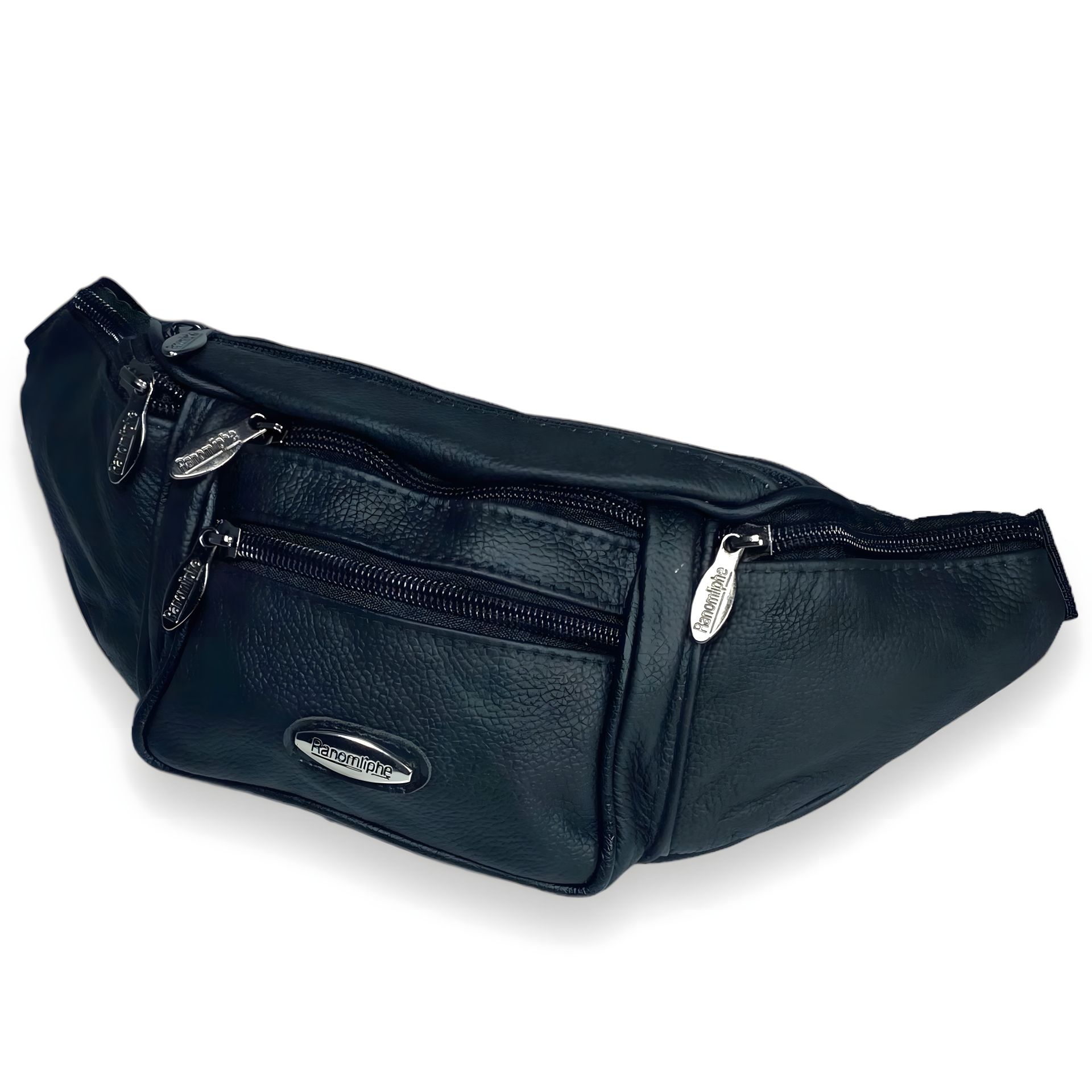 Бананка, сумка на пояс Ranomliphe, кожаная, одно отделение, четыре фронтальных кармана на замке, задняя карман на замке, размер: 30*12*8 см, черная.