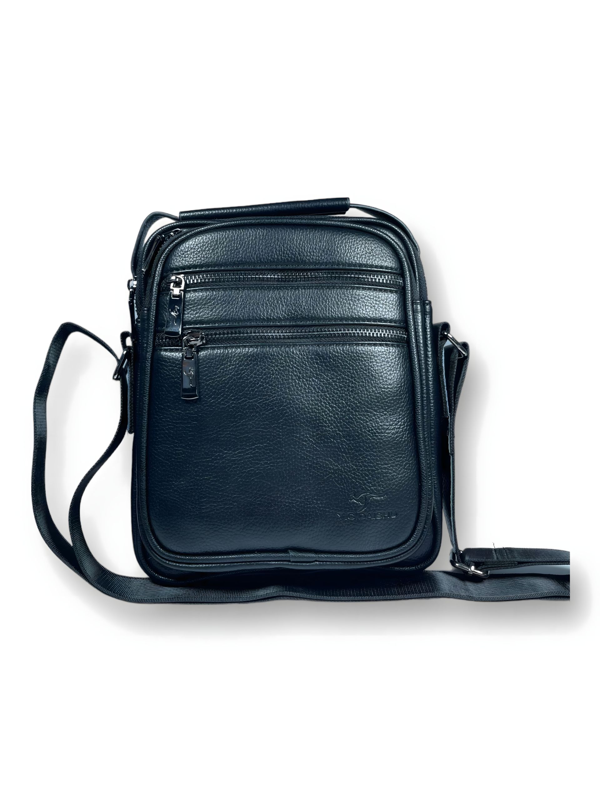 Сумка через плечо из кожзама, одно отделение, три фронтальных кармана, черная